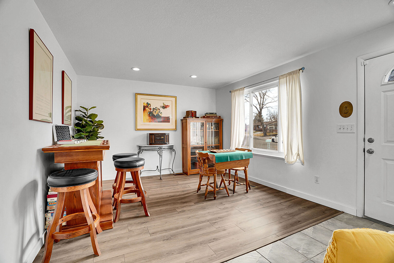 Baseboards Wall, Ceiling Fan, Drywall, Natural Light, Recessed Lighting, Textured Ceiling, Wood Finish Floor, Recessed Lighting, Wood Finish Floor