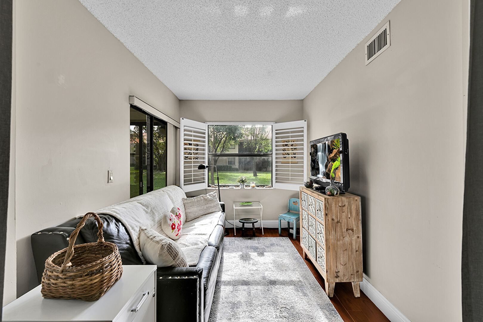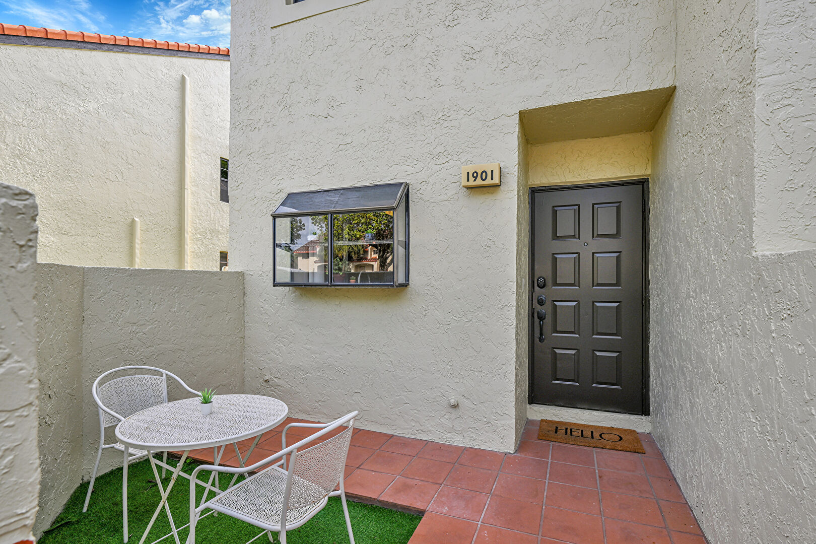 Apartment Complex View, Lawn, Stucco Siding, Sunroom, Tile Roof, Lawn, Tile Roof