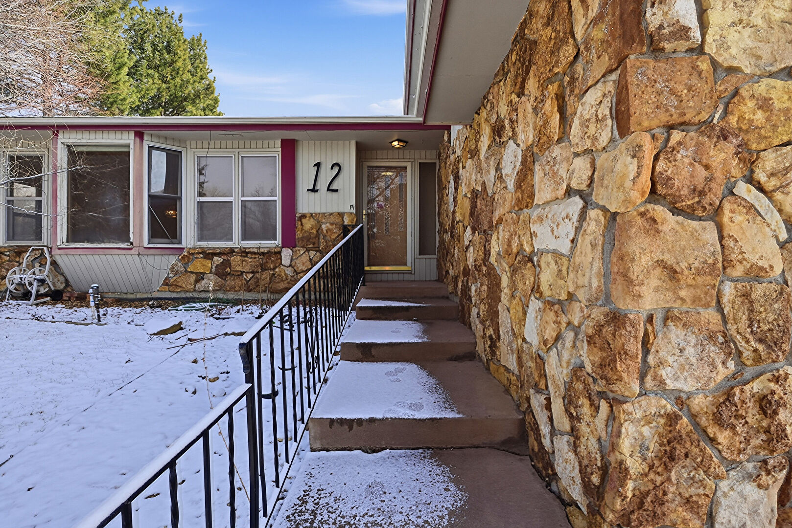 Stoop, Vertical Siding, Stone Siding