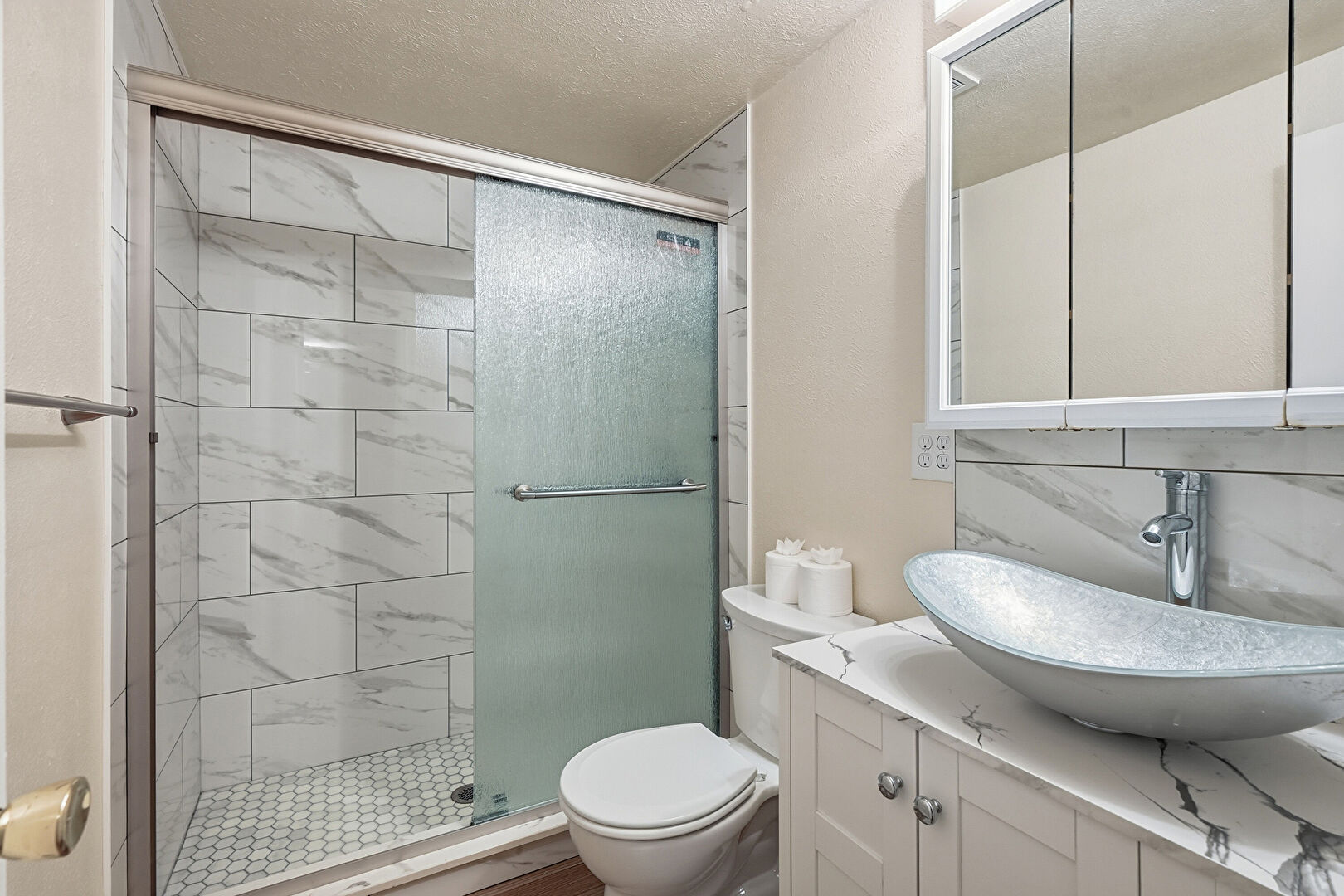 Full Bathroom, Textured Ceiling, Vanity, Drywall