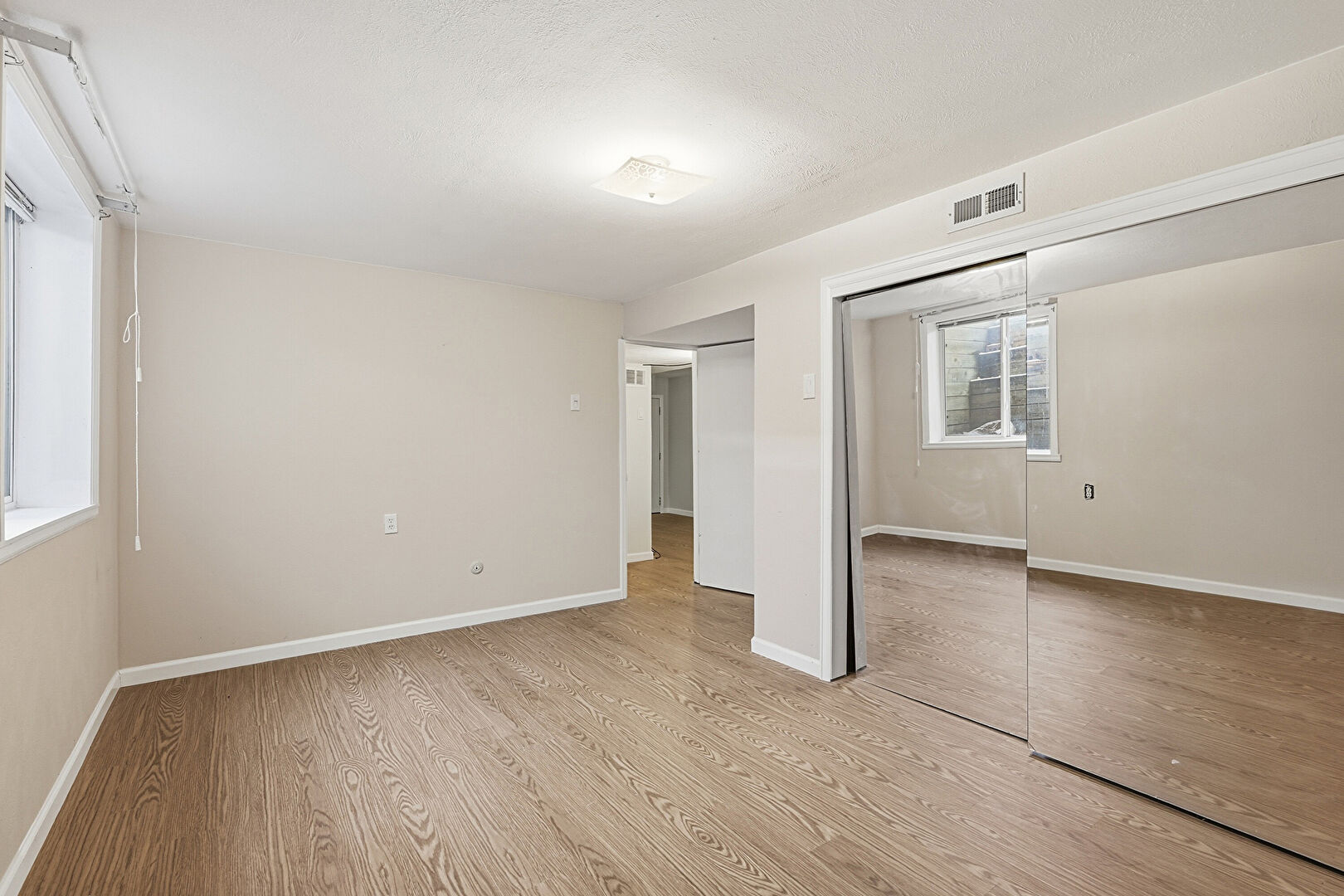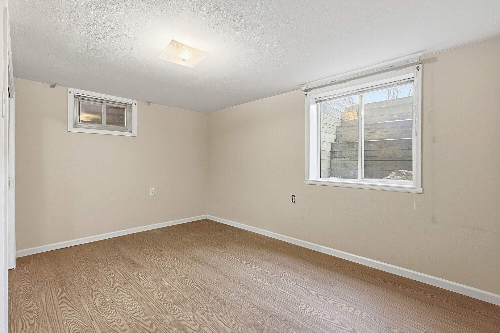 Baseboards Wall, Basement, Drywall, Natural Light, Textured Ceiling, Wood Finish Floor, Natural Light, Vent