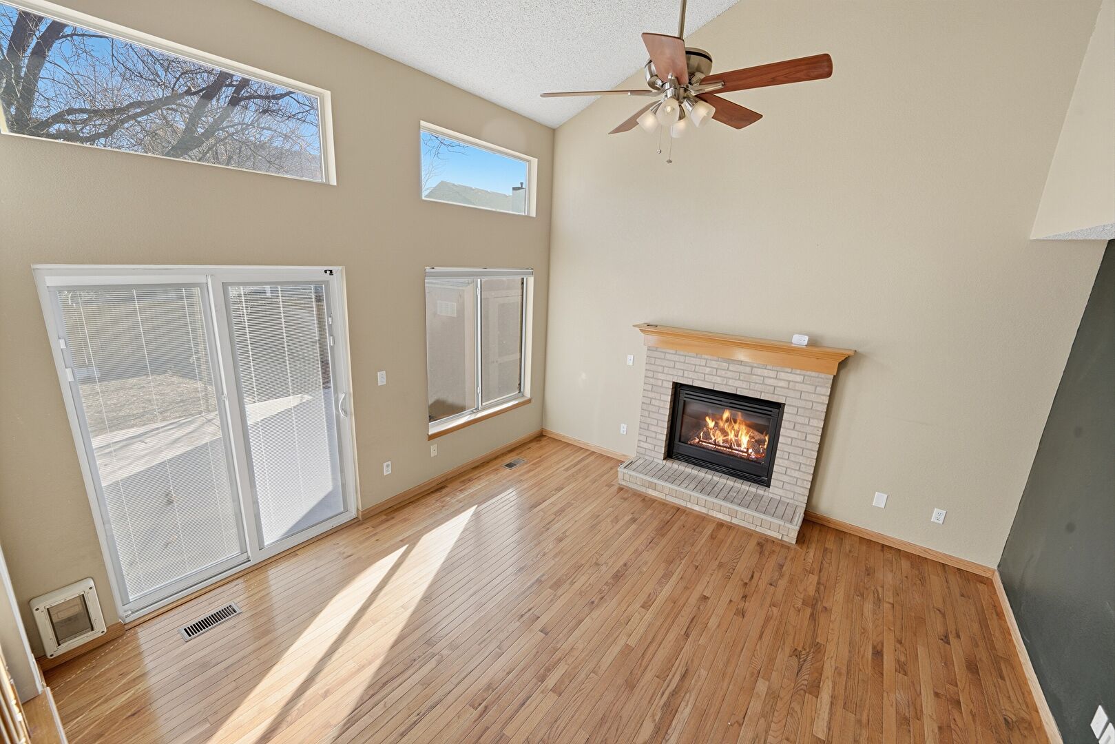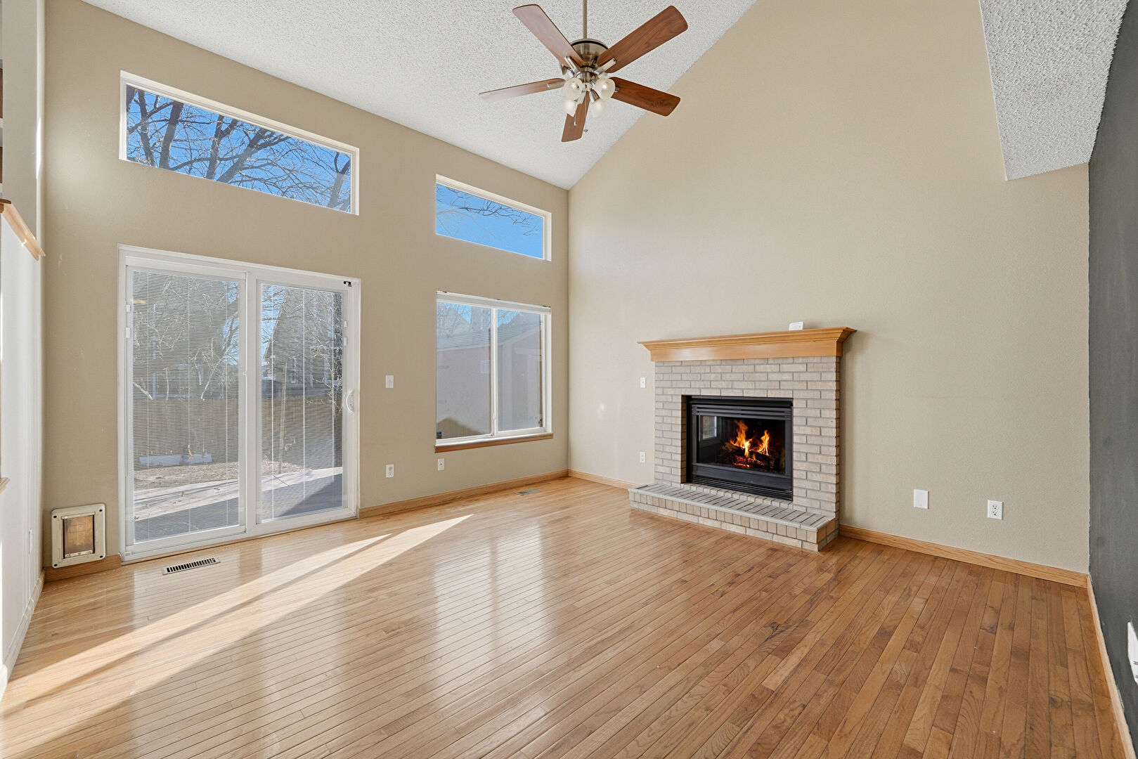 Baseboards Wall, Ceiling Fan, Drywall, Fireplace, High Ceiling, Natural Light, Notable Chandelier, Radiator, Recessed Lighting, Stairs, Textured Ceiling, Vaulted Ceiling, Vent, Wood Finish Floor, Fireplace, High Ceiling, Wood Finish Floor