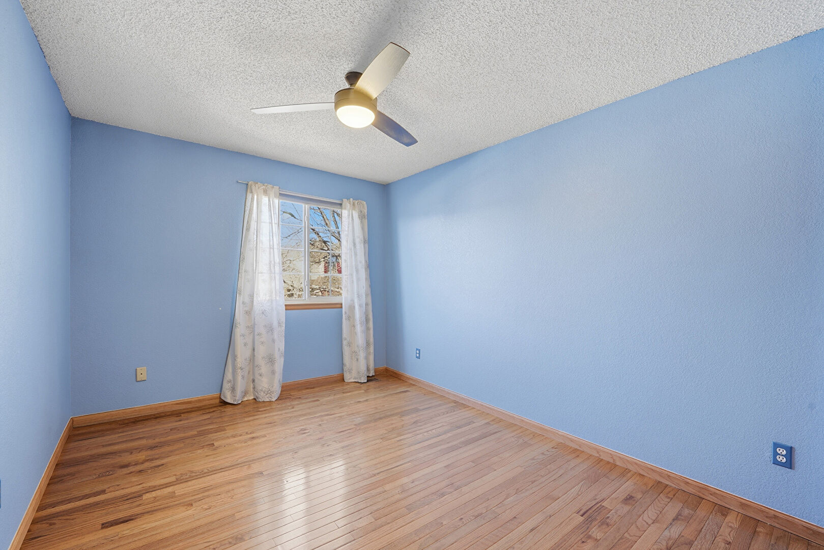 Baseboards Wall, Ceiling Fan, Drywall, Natural Light, Textured Ceiling, Vent, Wood Finish Floor, Textured Ceiling, Wood Finish Floor