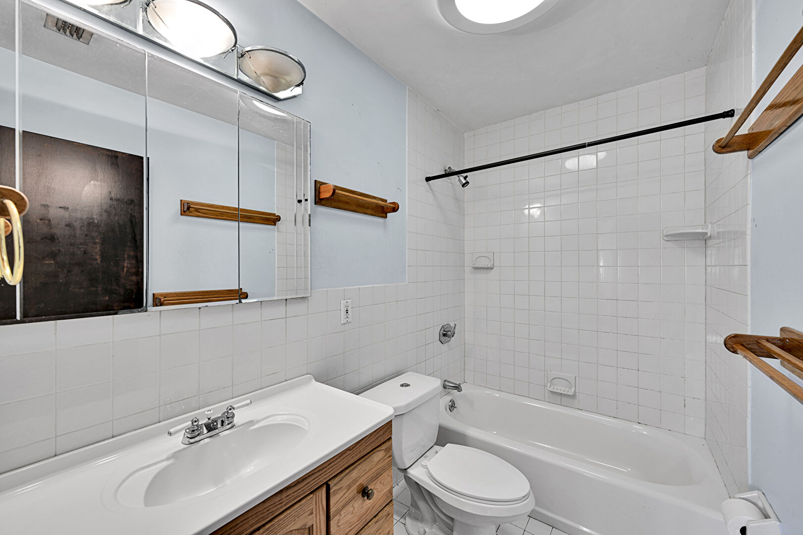 Combined Bath Shower, Drywall, Full Bathroom, Tile Wall, Vanity, Vent, Drywall, Tile Wall