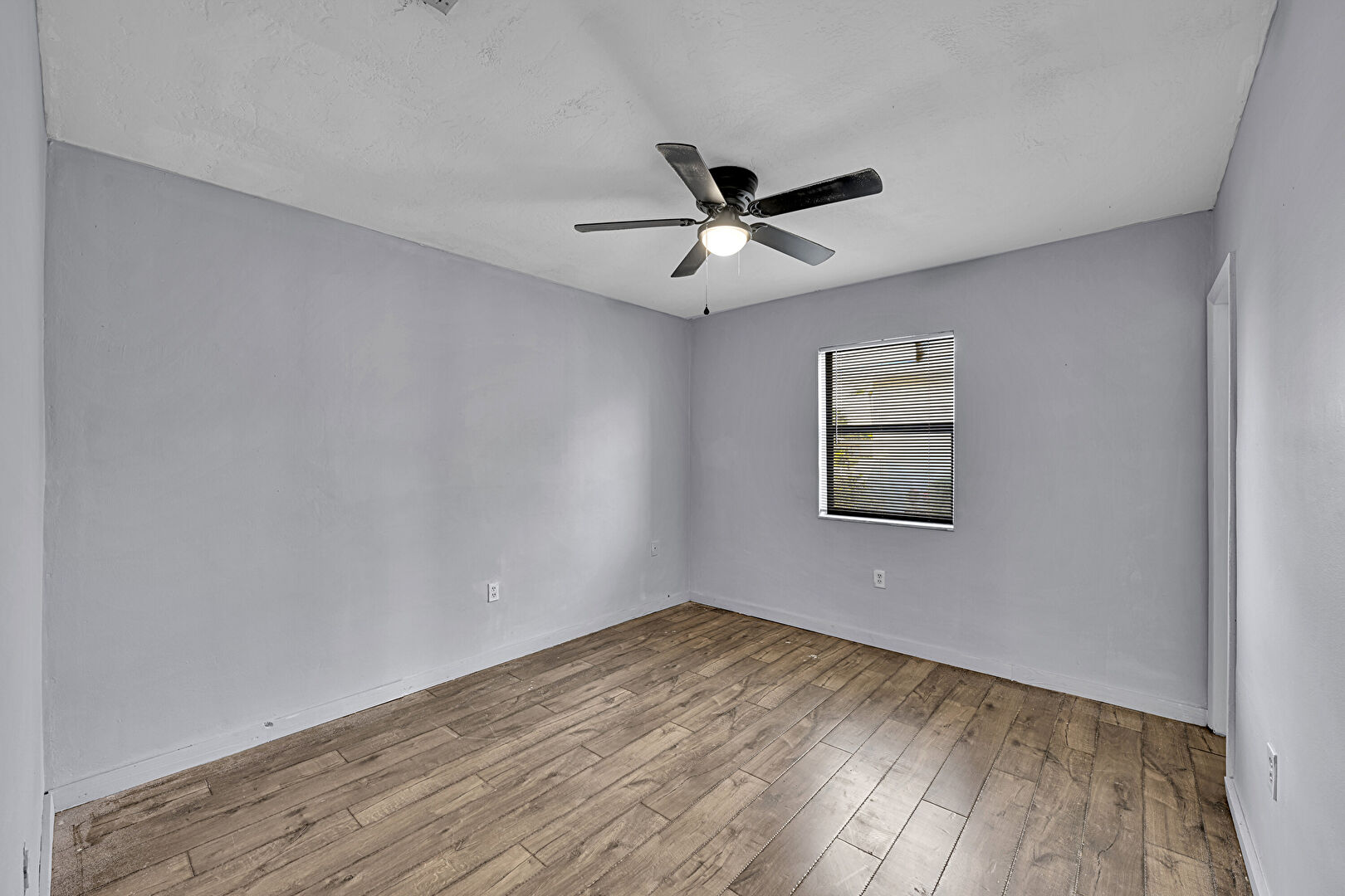 Baseboards Wall, Ceiling Fan, Closet, Drywall, Natural Light, Textured Ceiling, Vaulted Ceiling, Wood Finish Floor, Baseboards Wall, Ceiling Fan, Natural Light, Wood Finish Floor
