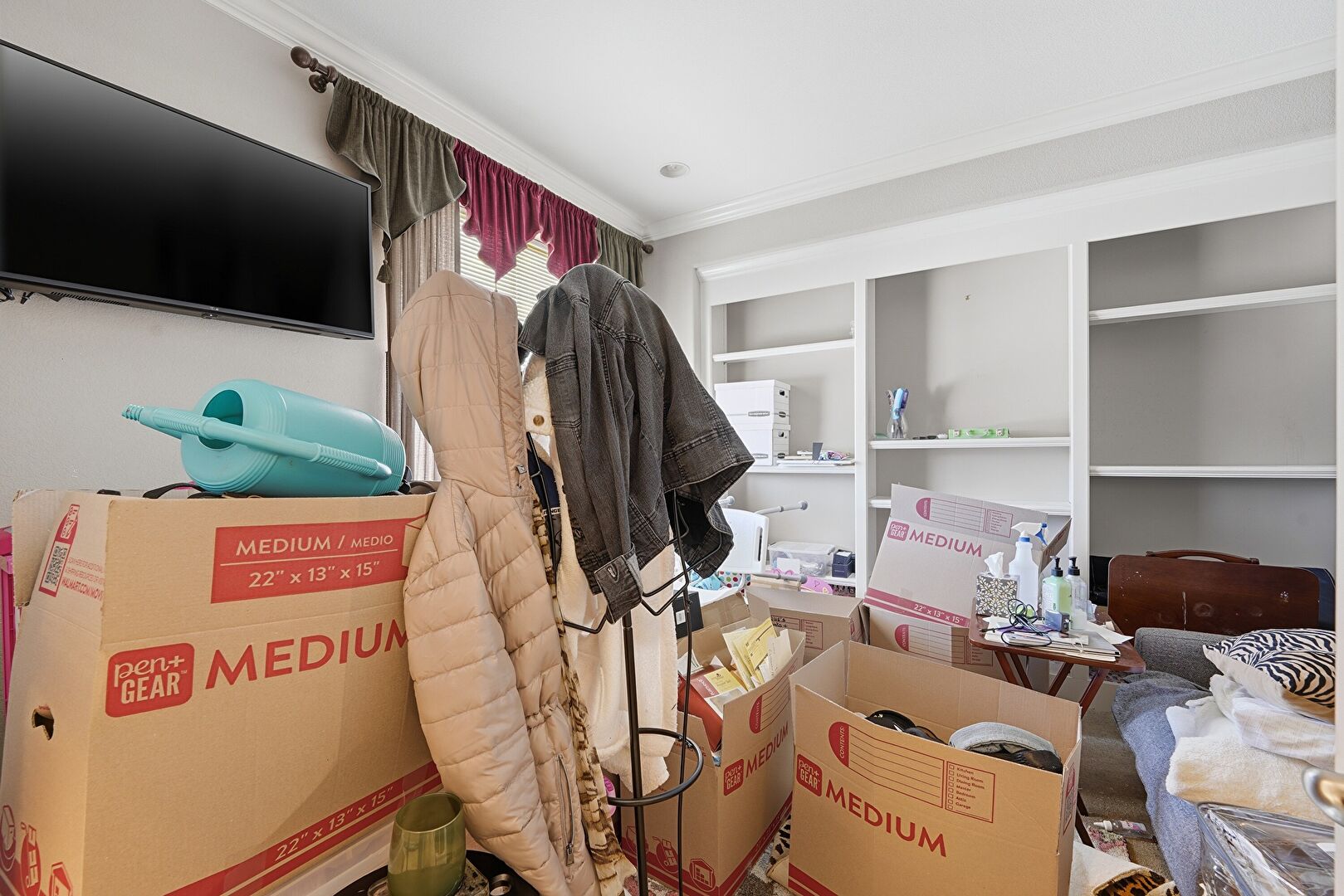Baseboards Wall, Carpet, Closet, Drywall, Natural Light, Scuttle, Wallpaper Wall, Carpet, Closet, Drywall, Natural Light