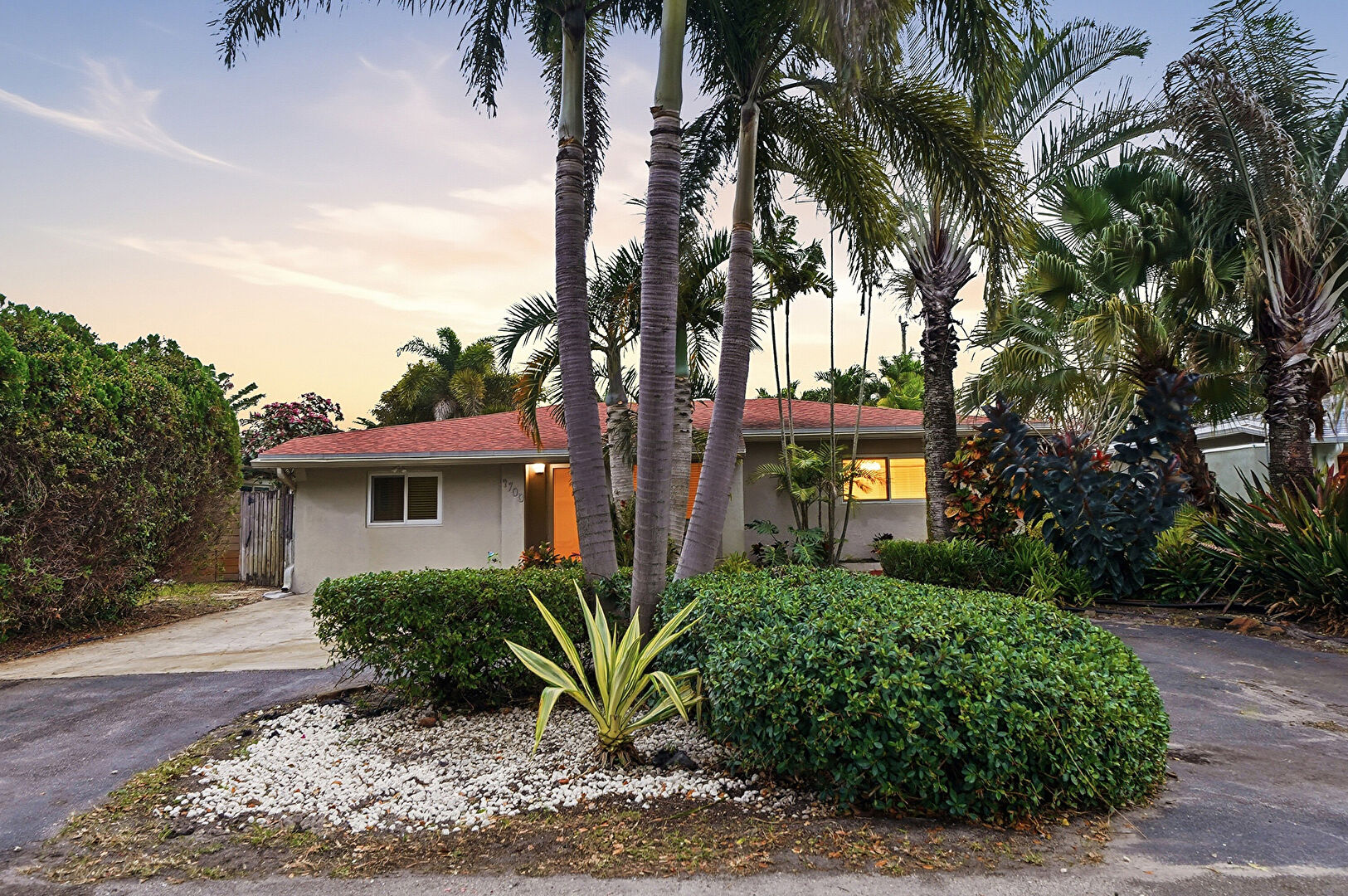 Downspout, Driveway, Fence, Gutters, Lawn, Parking Pad, Stucco Siding, Driveway, Gutters, Parking Pad, Stone Siding, Stucco Siding