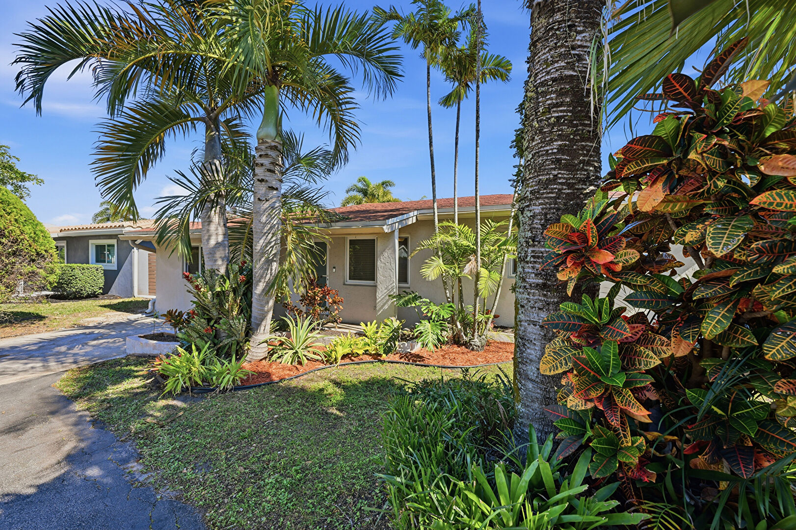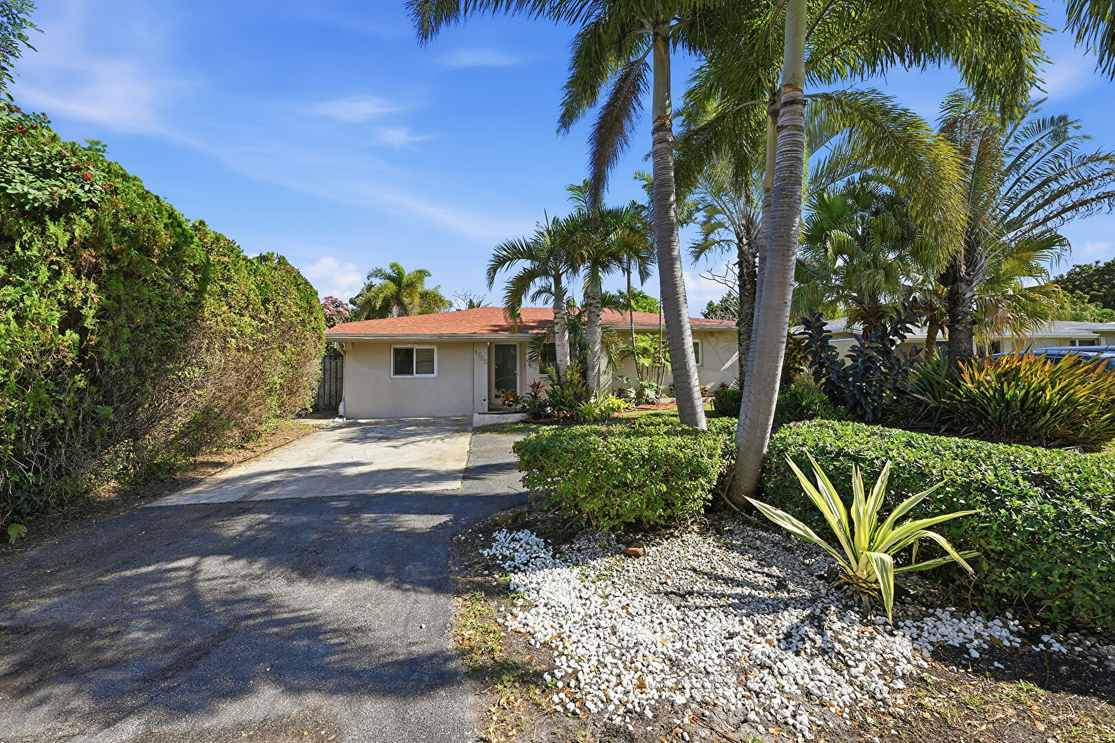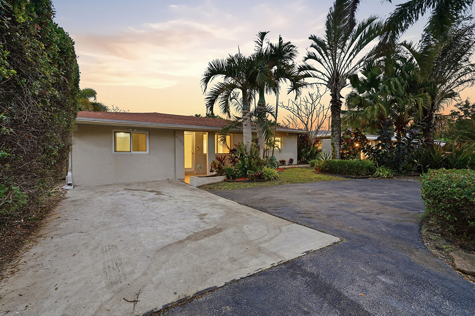 City View, Driveway, Lawn, Parking Pad, Residential View, Stucco Siding, Driveway, Residential View, Stucco Siding, Woods View