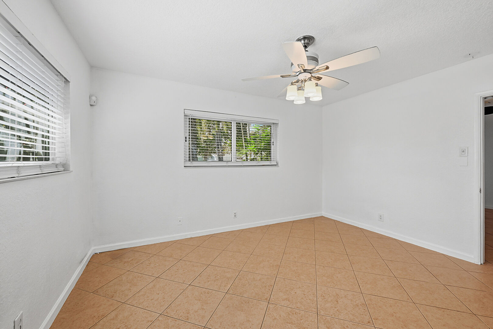 Arched Walkways, Baseboards Wall, Ceiling Fan, Drywall, Natural Light, Textured Ceiling, Textured Wall, Tile Floor, Tray Ceiling, Vent, Textured Ceiling, Tile Floor