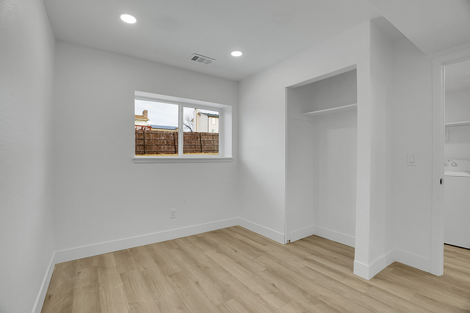 Baseboards Wall, Closet, Drywall, Laundry, Natural Light, Recessed Lighting, Washer Dryer, Wood Finish Floor, Vent, Wood Finish Floor