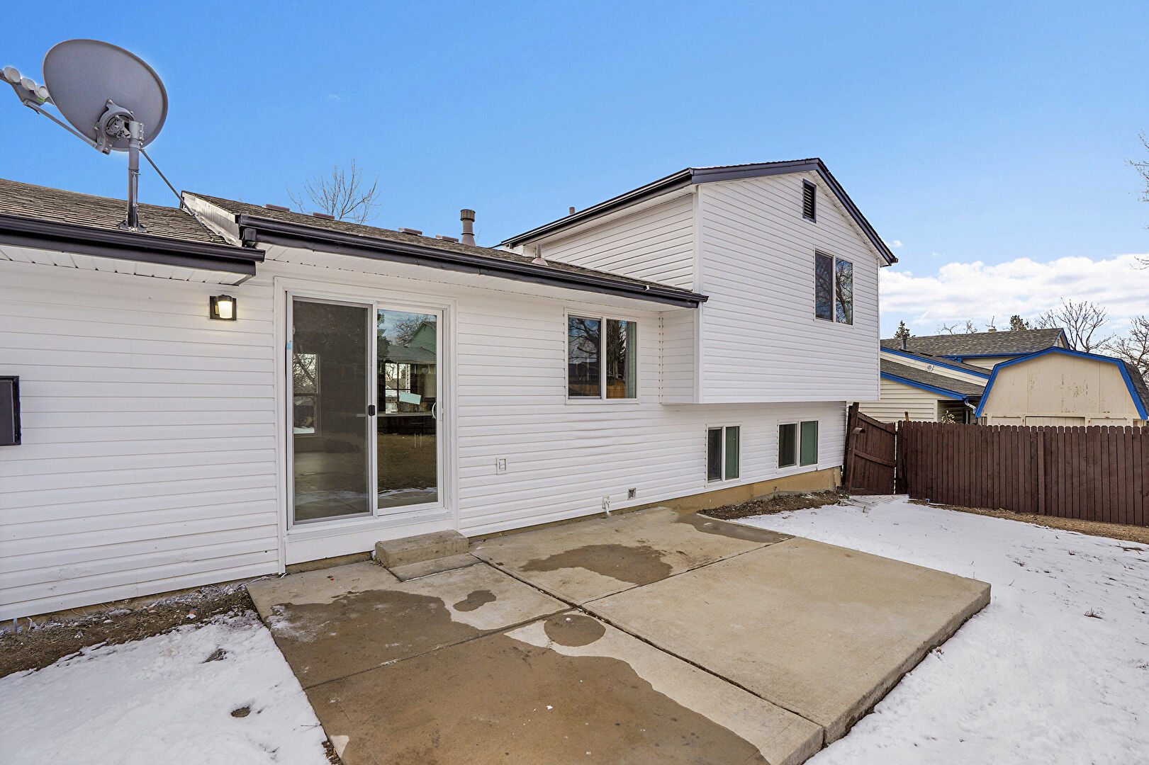 Concrete Foundation, Downspout, Fence, Gate, Horizontal Siding, Lawn, Patio, Residential View, Satellite Dish, Patio, Satellite Dish
