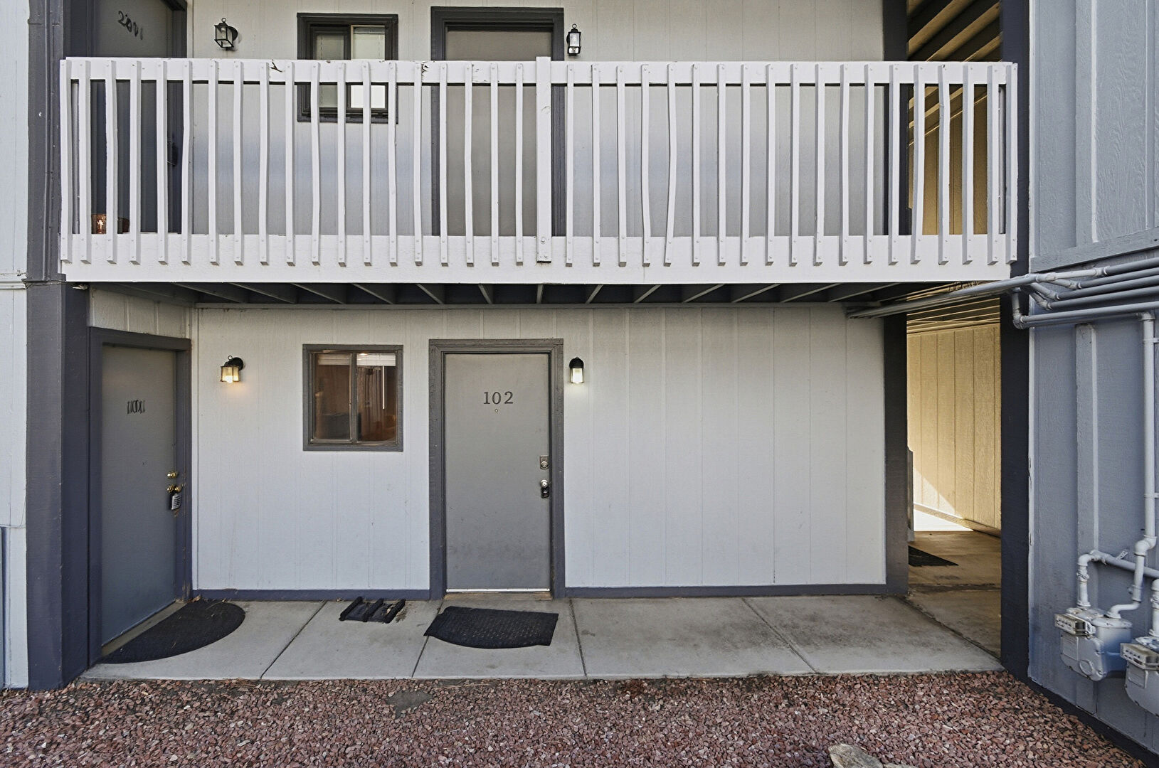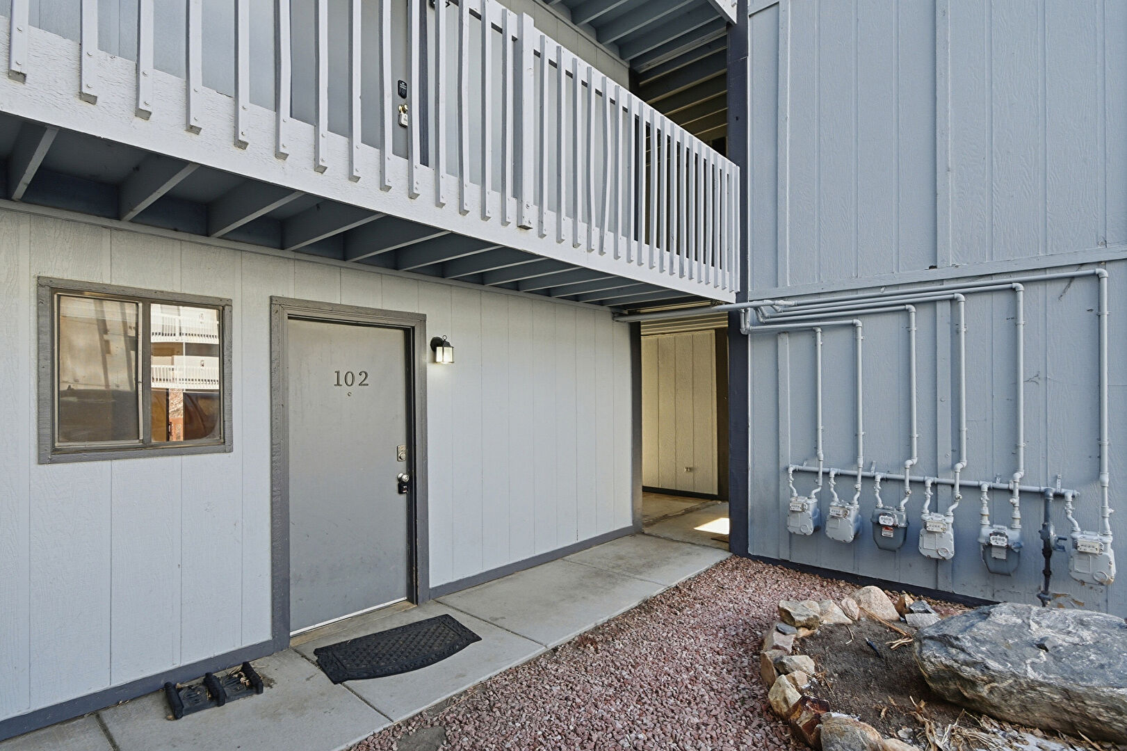 Gas Meter, Pad Mount Transformer, Vertical Siding, Balcony