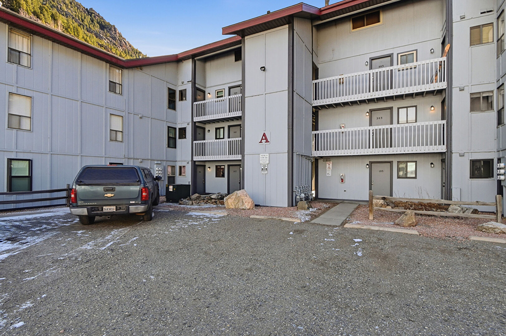 Apartment Complex View, Forest View, Mountain View, Parking Lot, Apartment Complex View, Gas Meter, Mountain View, Parking Lot