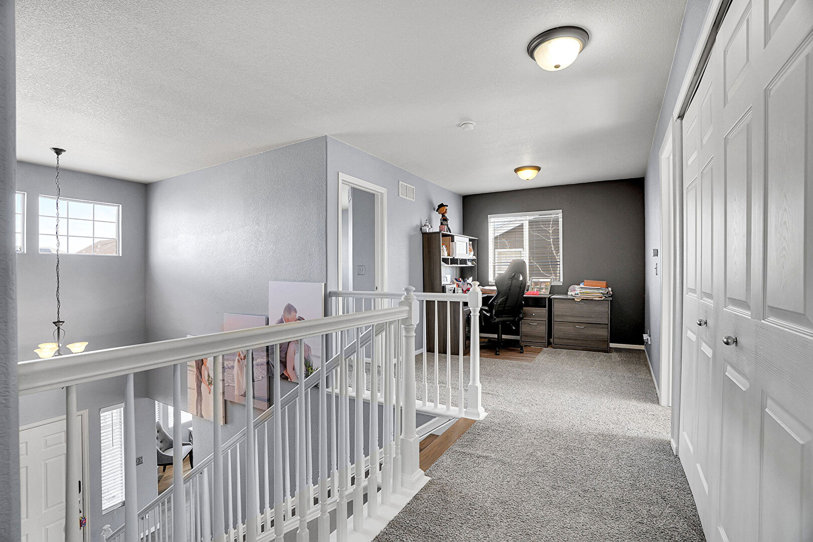 Baseboards Wall, Carpet, Drywall, Loft, Natural Light, Office Area, Upstairs Landing, Vent, Carpet, Textured Ceiling