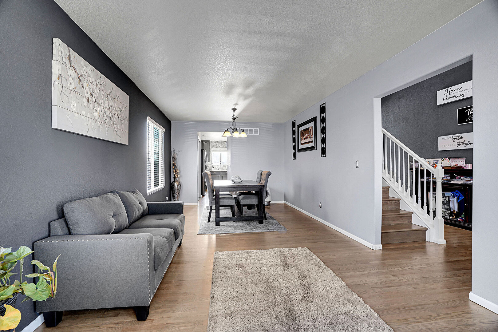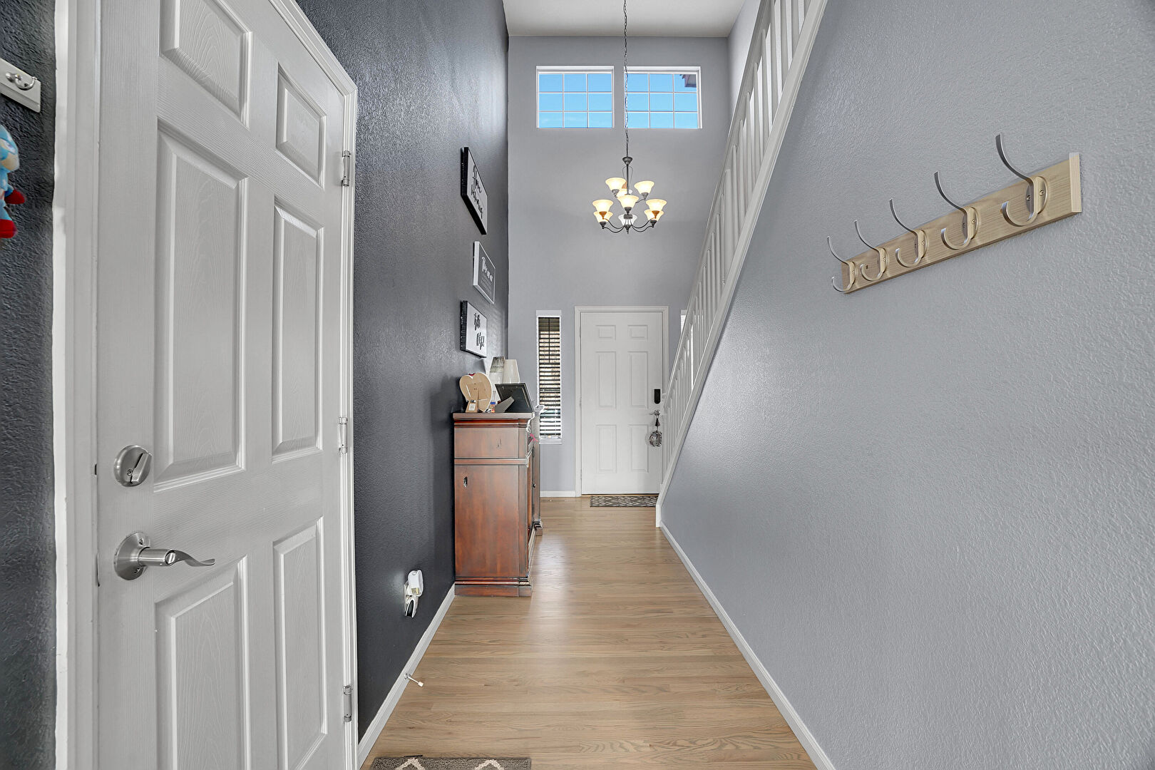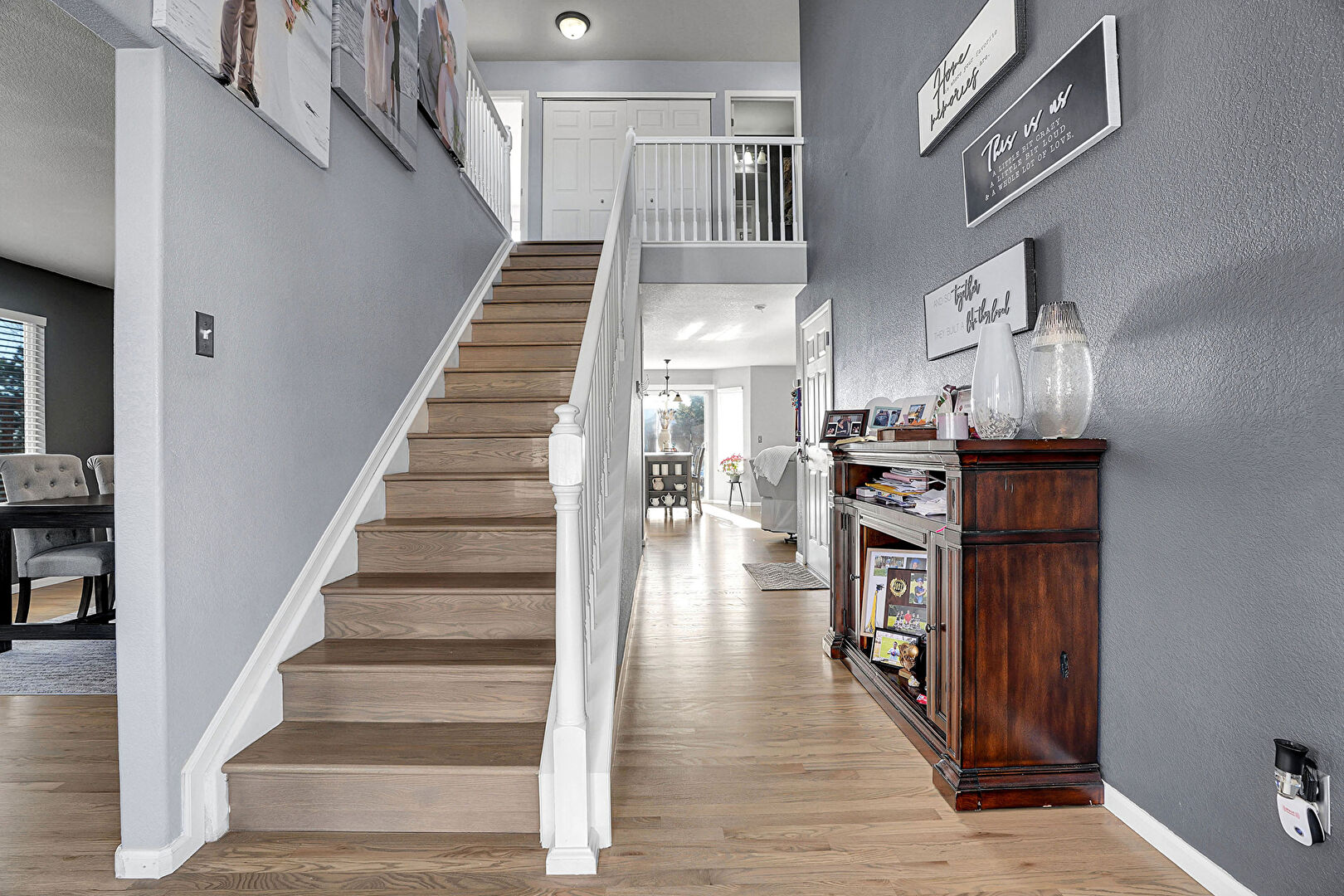 Baseboards Wall, Drywall, Natural Light, Notable Chandelier, Stairs, Textured Ceiling, Textured Wall, Vent, Wood Finish Floor, Baseboards Wall, Natural Light, Textured Ceiling, Vent