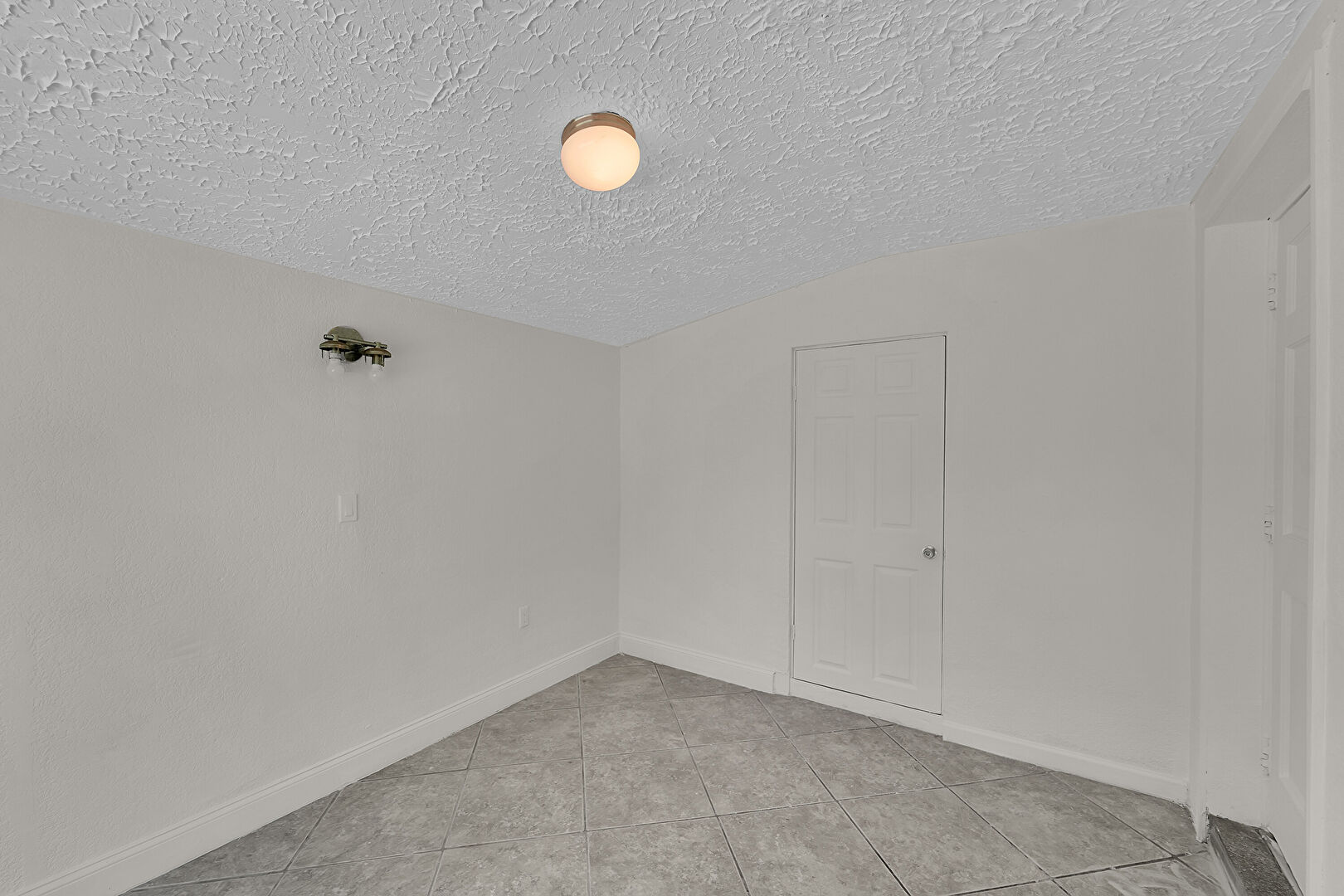 Baseboards Wall, Drywall, Natural Light, Textured Ceiling, Tile Floor, Vaulted Ceiling, Wall Mounted Ac, Textured Ceiling, Tile Floor