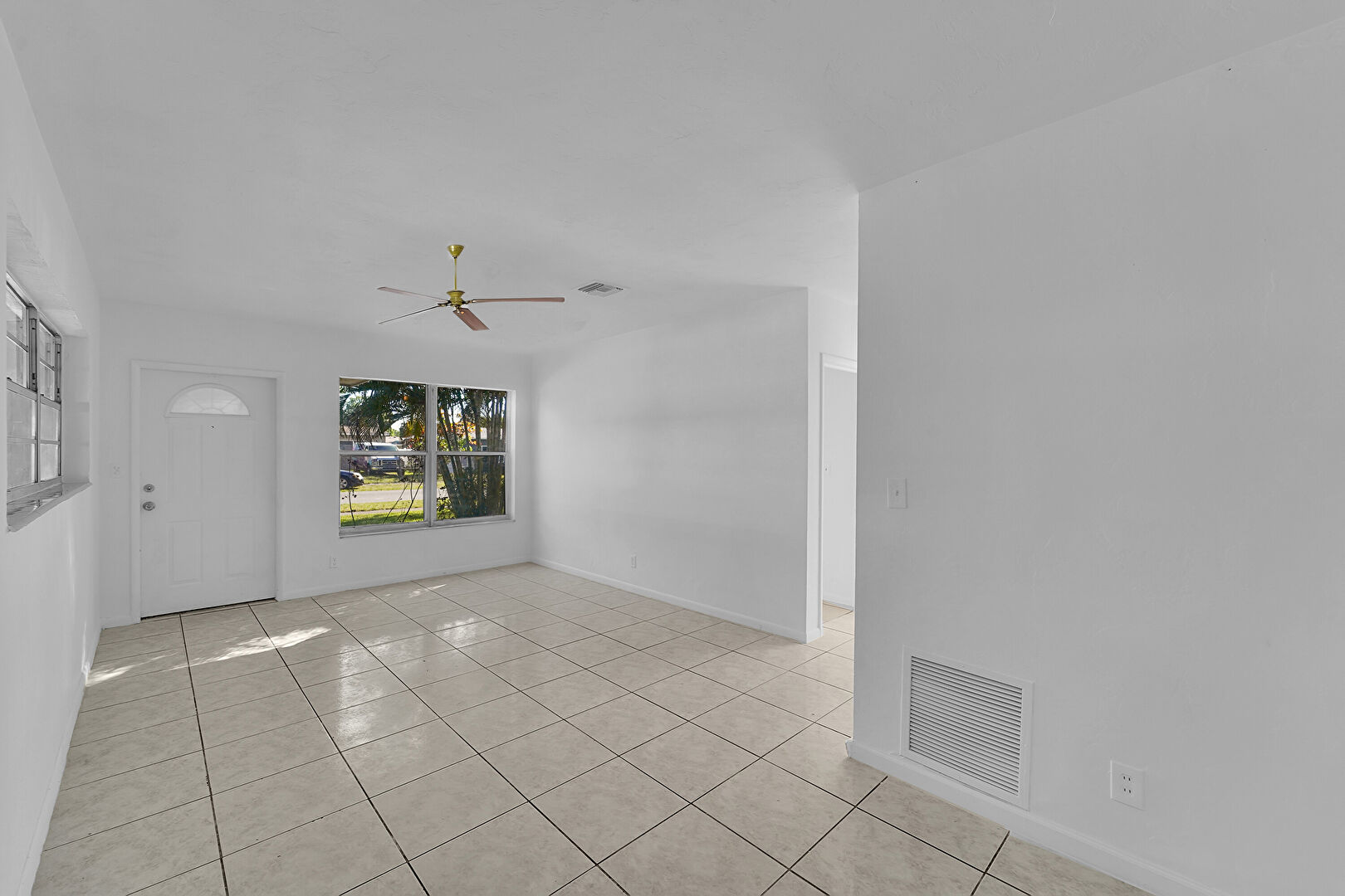Baseboards Wall, Ceiling Fan, Drywall, Natural Light, Tile Floor, Drywall, Tile Floor, Vent