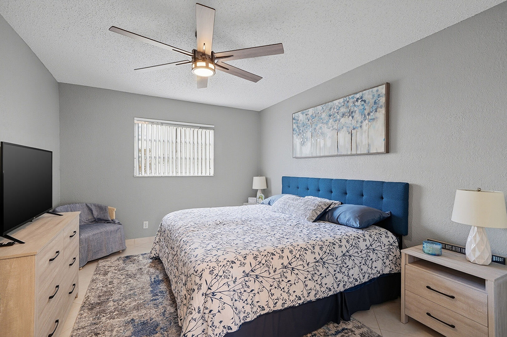 Ceiling Fan, Textured Ceiling, Textured Wall, Tile Floor, Baseboards Wall