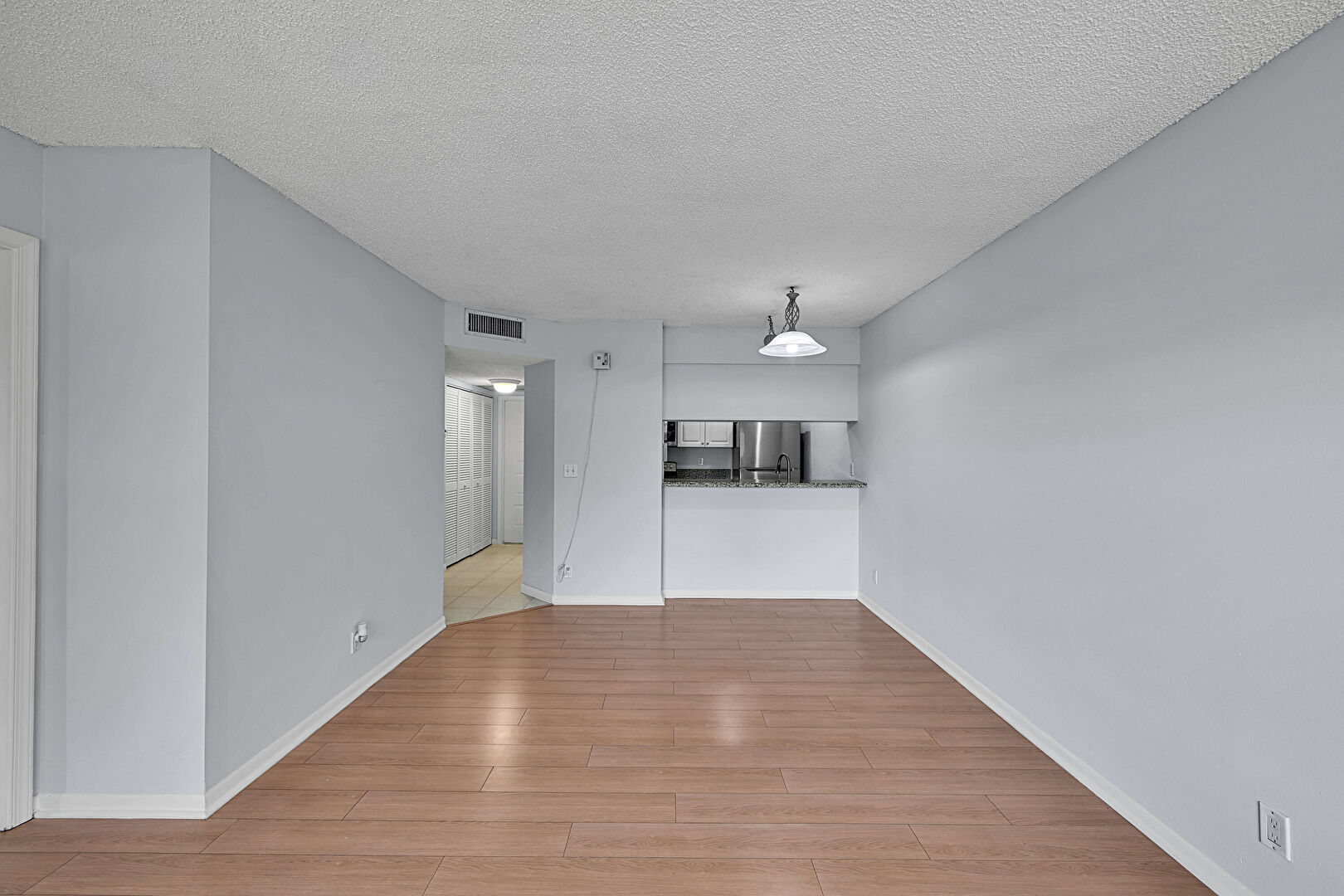 Baseboards Wall, Drywall, Textured Ceiling, Vent, Wood Finish Floor