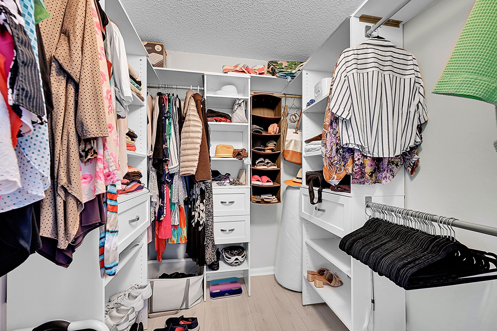 Baseboards Wall, Central Ac, Closet, Drywall, Parking Lot, Vent, Wood Finish Floor, Apartment Complex View, Ceiling Fan