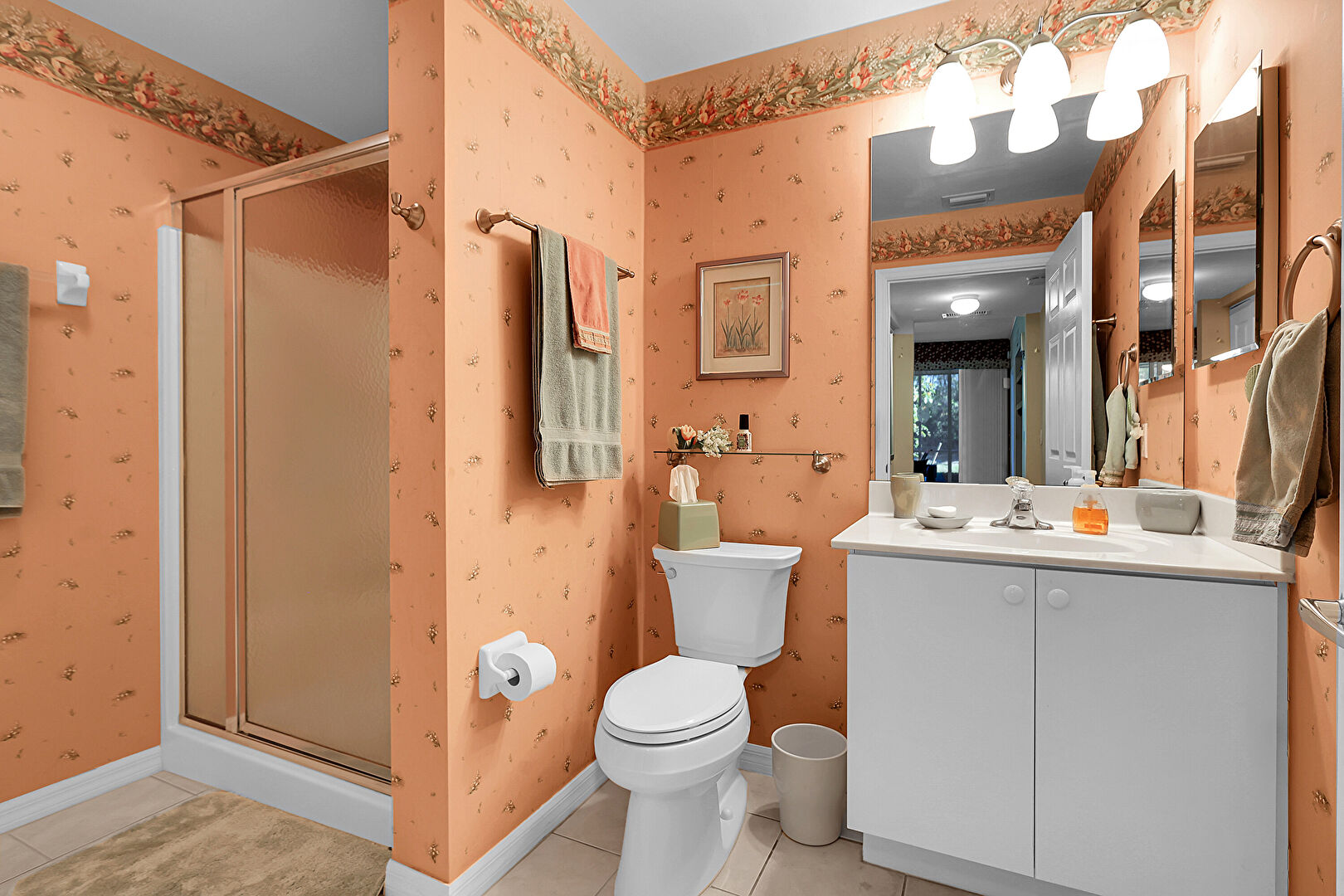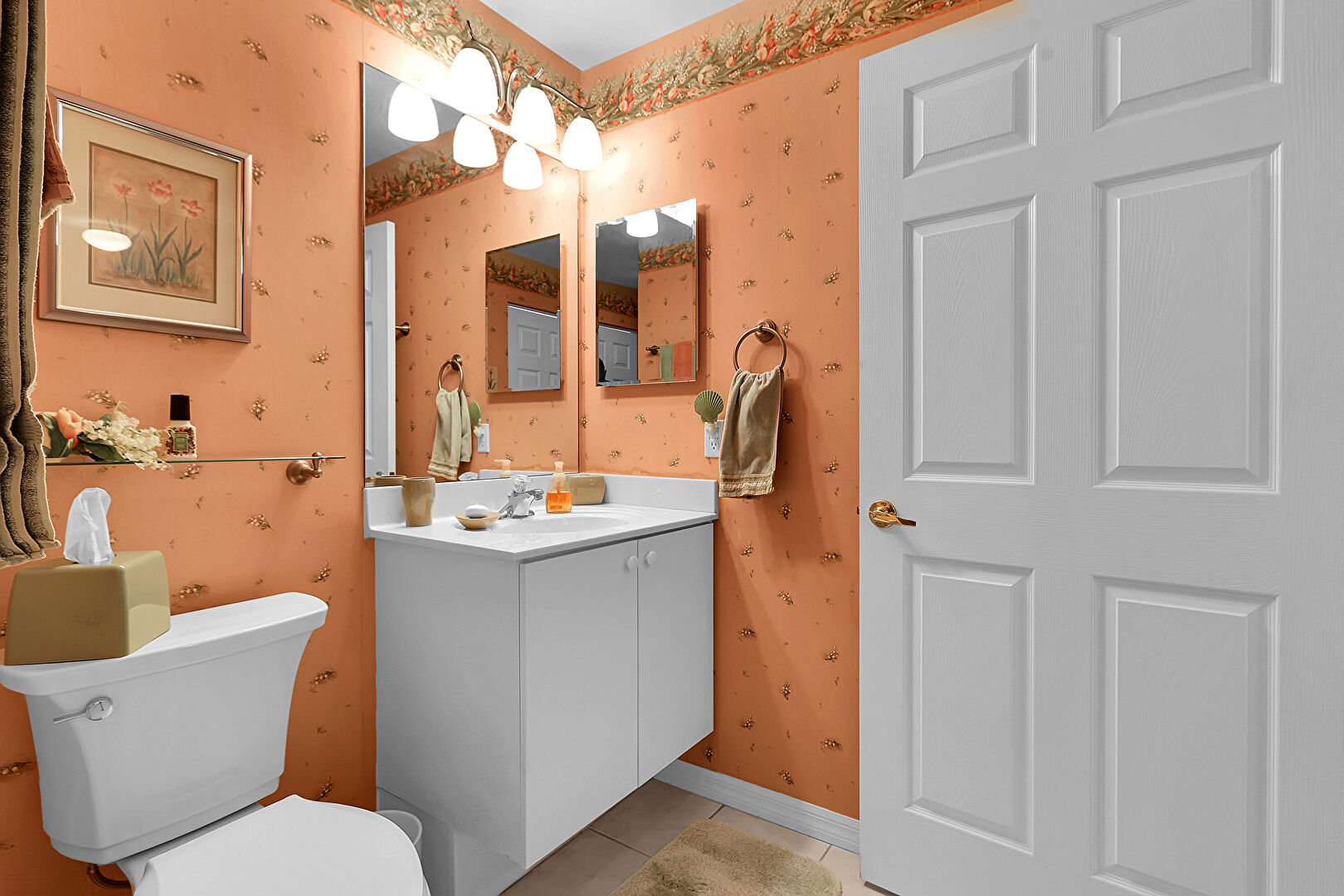 Baseboards Wall, Full Bathroom, Half Bathroom, Tile Floor, Vanity, Vent, Wallpaper Wall, Baseboards Wall, Tile Floor