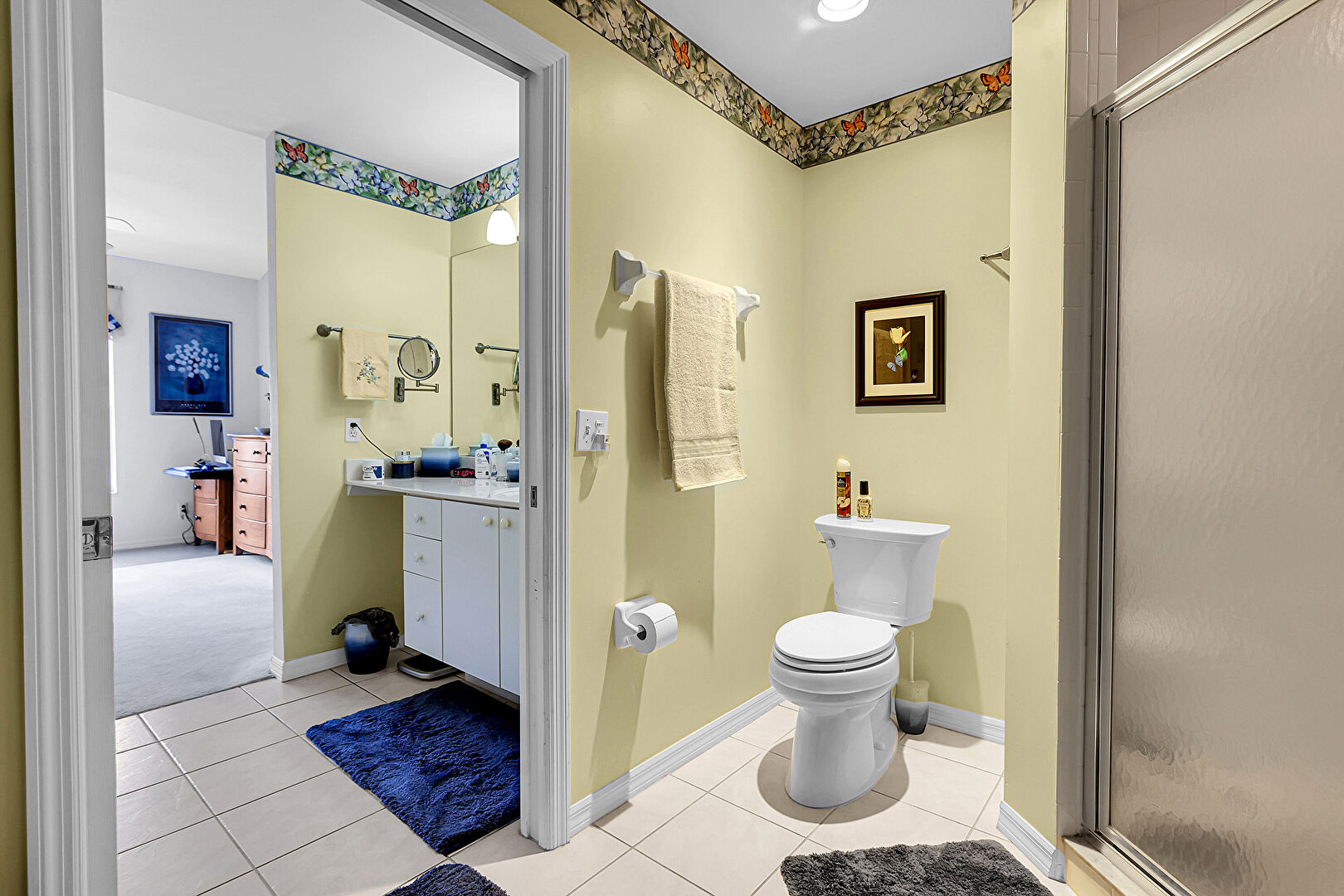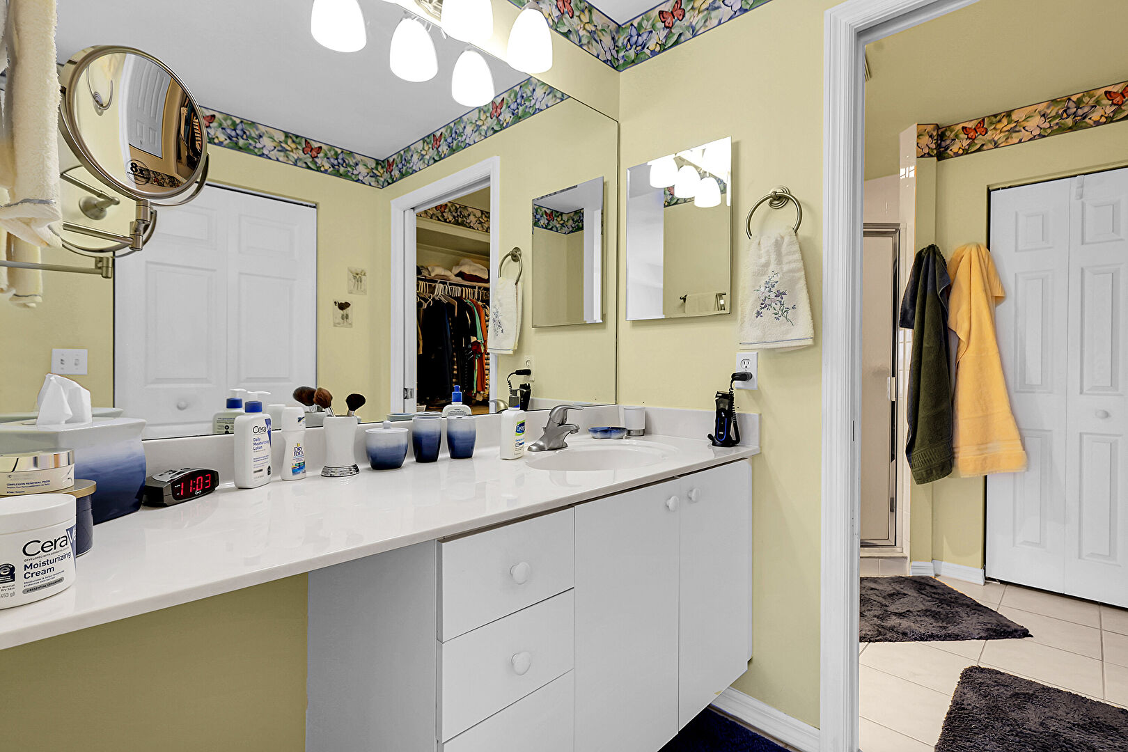 Baseboards Wall, Drywall, Full Bathroom, Tile Floor, Vanity, Walk In Closet, Baseboards Wall, Vanity