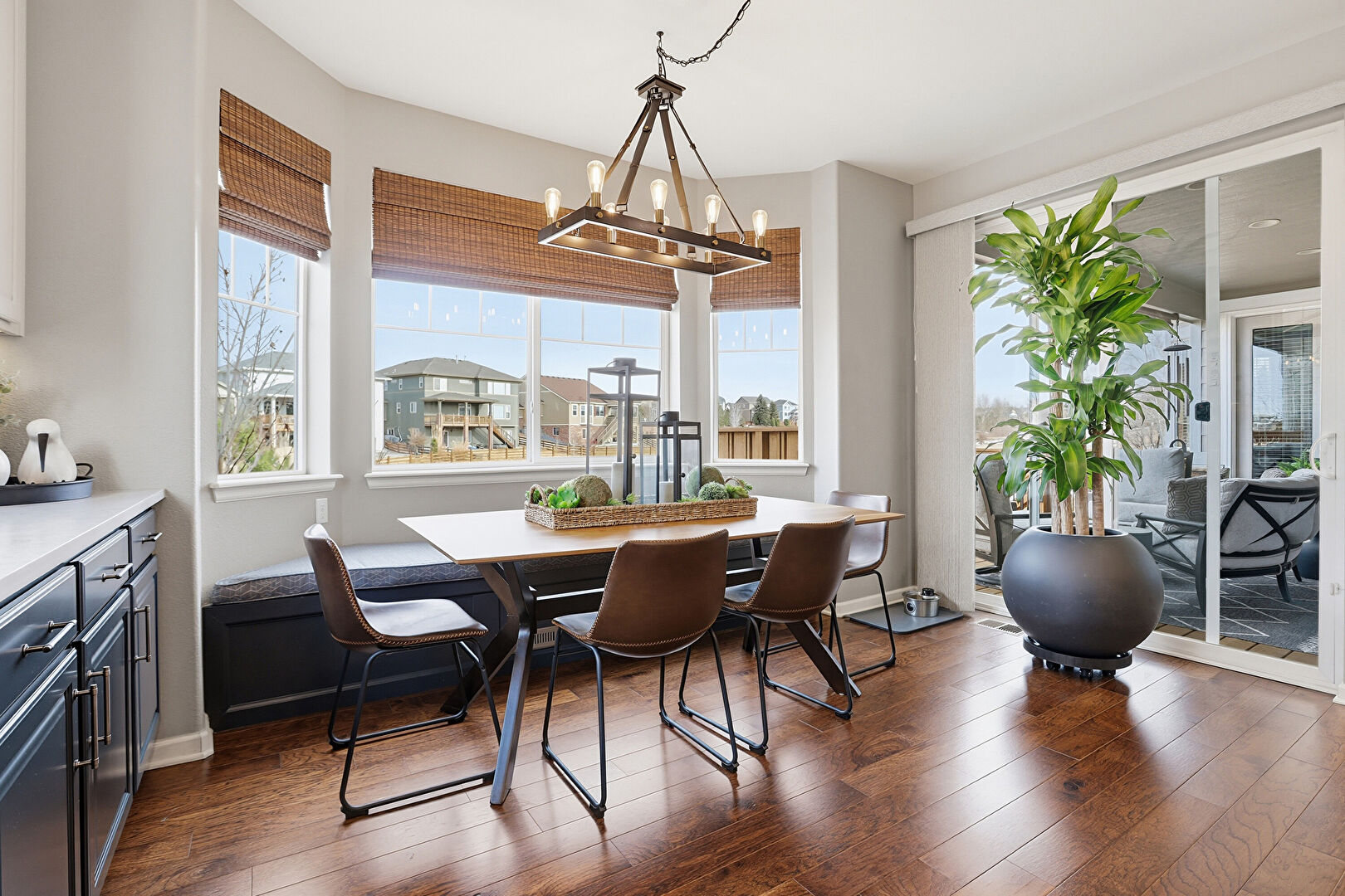 Baseboards Wall, Drywall, Natural Light, Notable Chandelier, Residential View, Wood Finish Floor, Baseboards Wall, Brick Wall