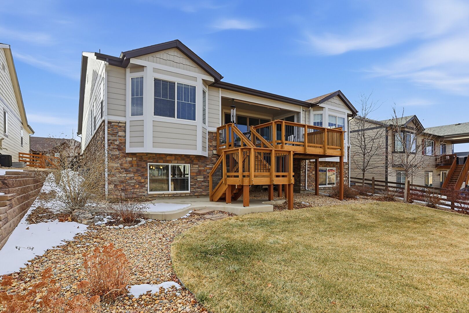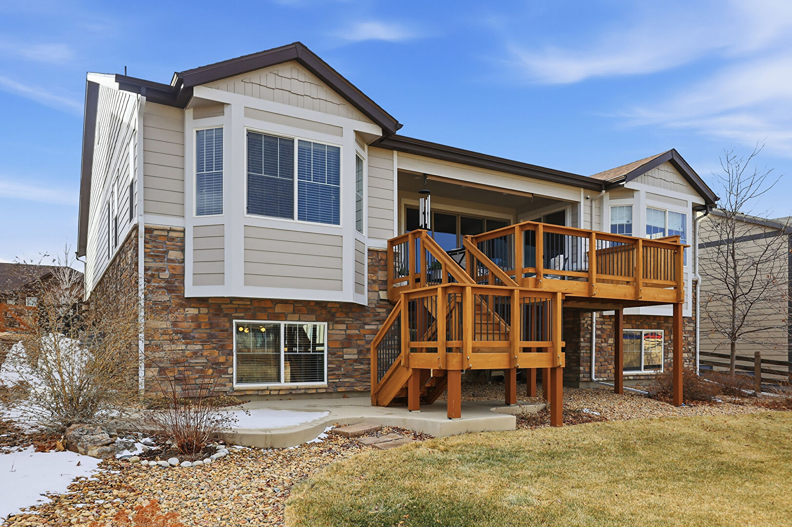 Basement Walk Out, Central Ac, Deck, Downspout, Fence, Gutters, Horizontal Siding, Lawn, Patio, Playground, Shake Shingle Siding, Stairs, Stone Siding, Deck, Downspout, Horizontal Siding