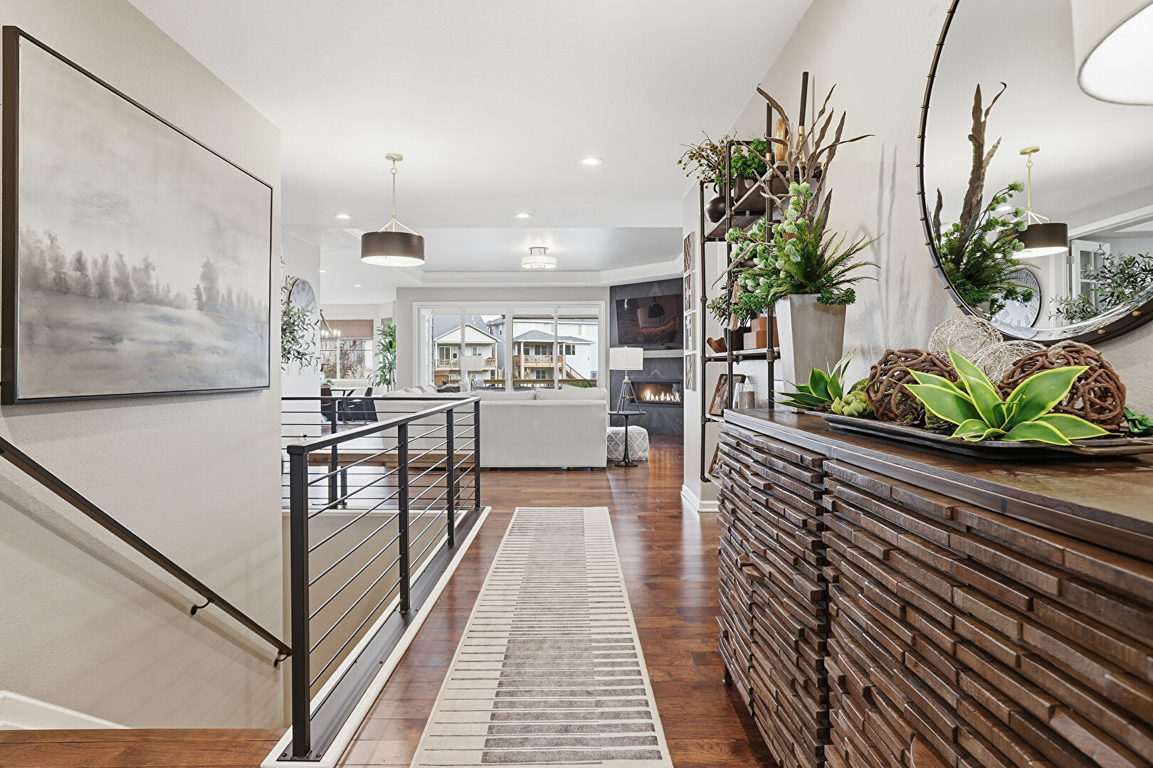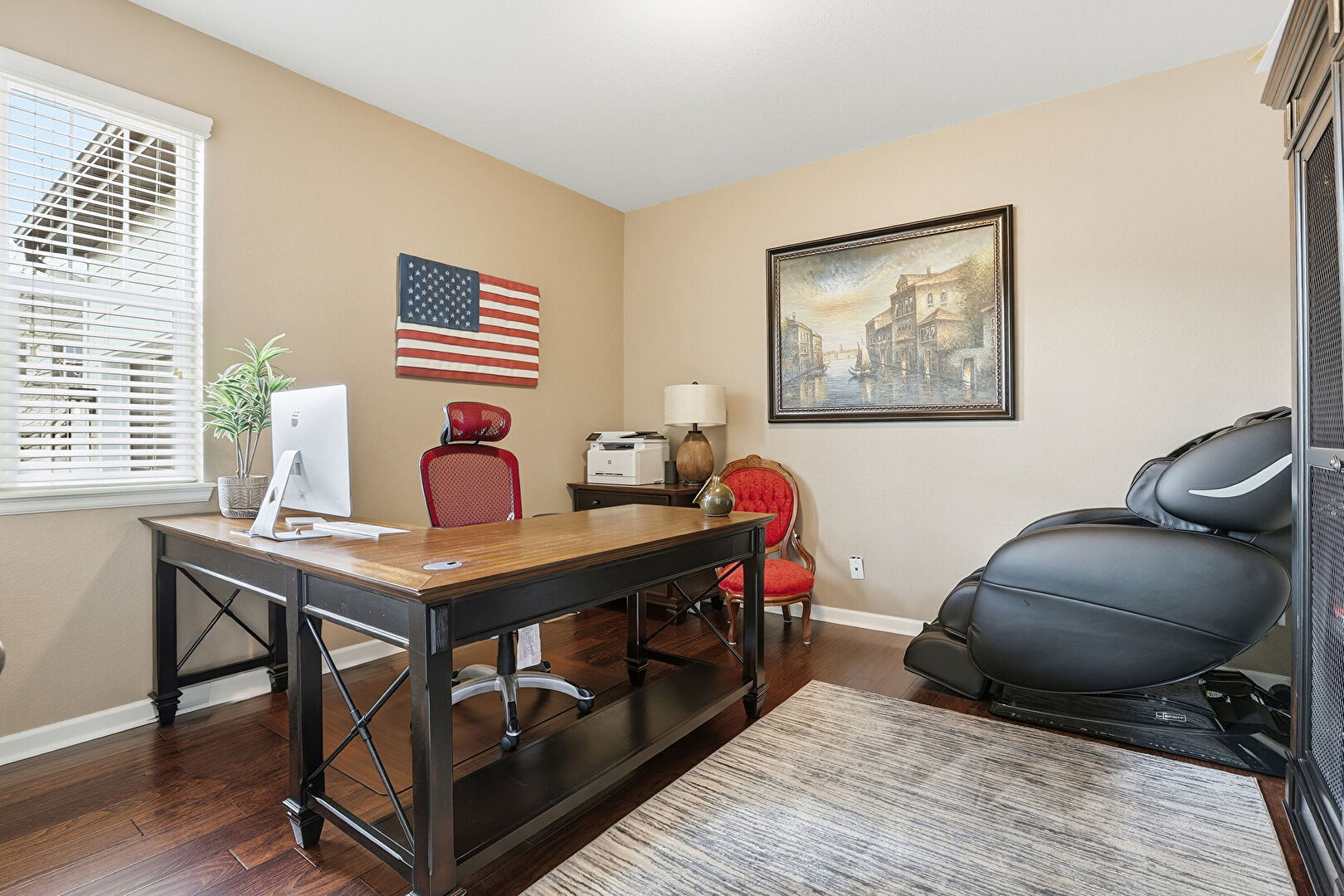 Baseboards Wall, Drywall, Office Area, Recessed Lighting, Upstairs Landing, Wood Finish Floor, Natural Light