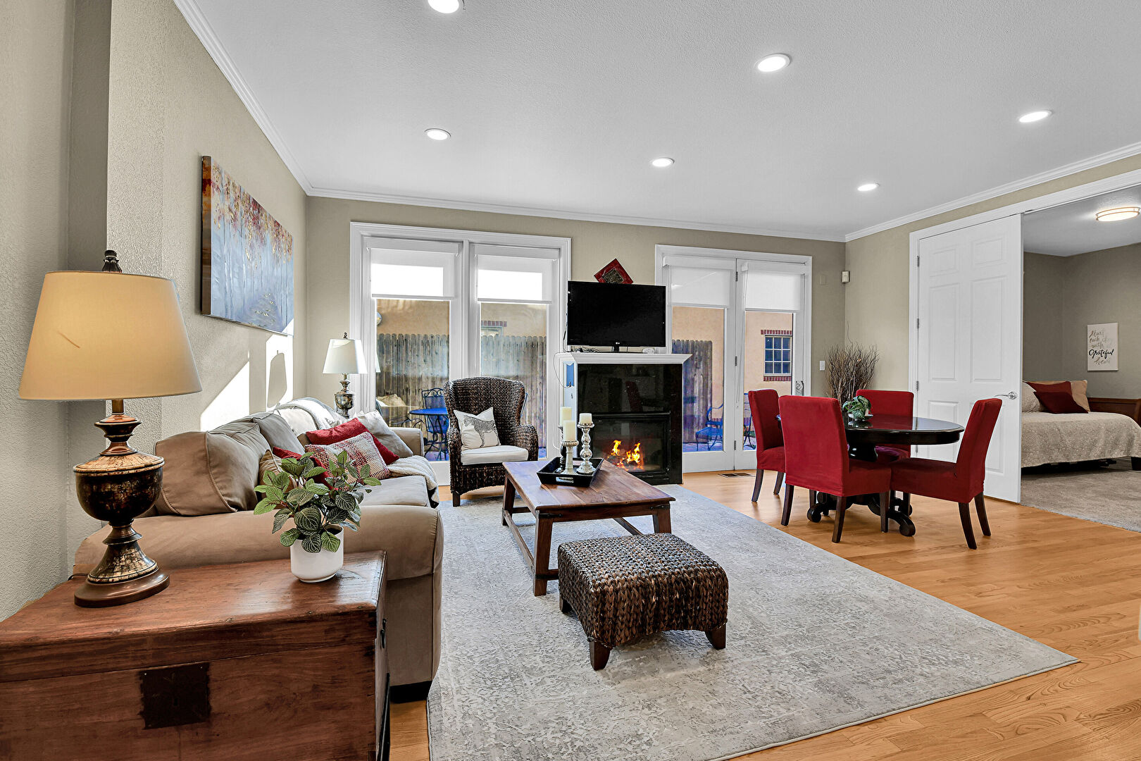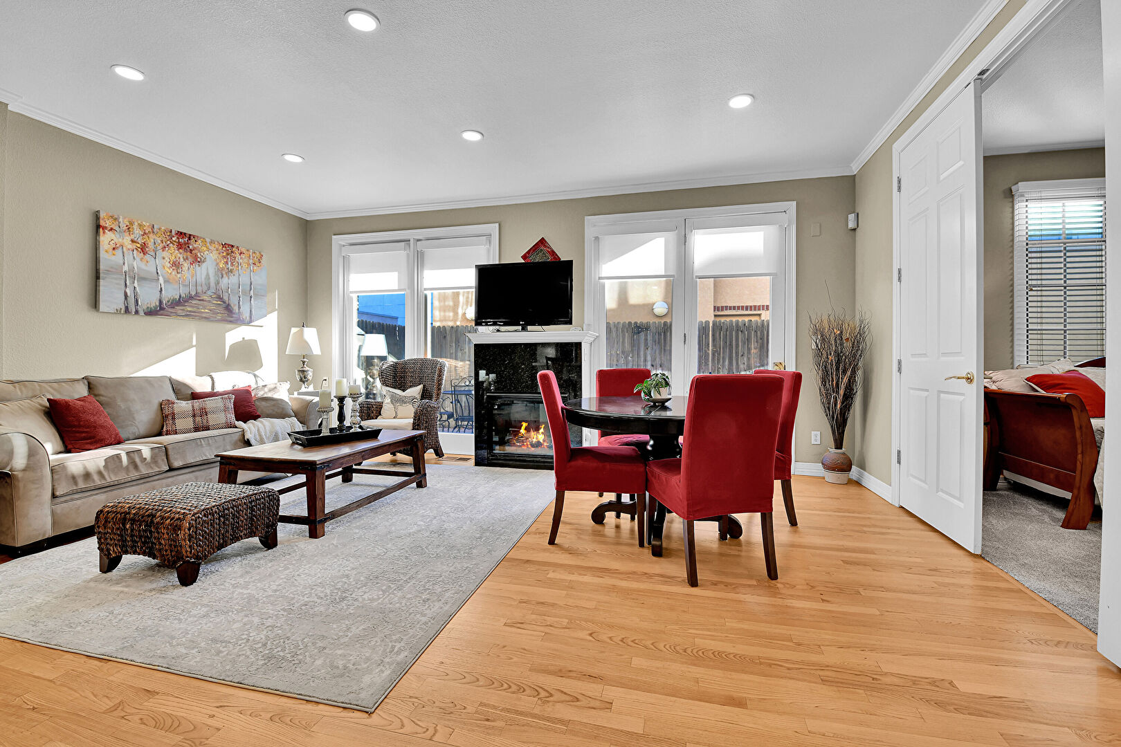 Baseboards Wall, Crown Molding, Drywall, Fireplace, Natural Light, Recessed Lighting, Vent, Wood Finish Floor, Drywall, Fireplace, Natural Light