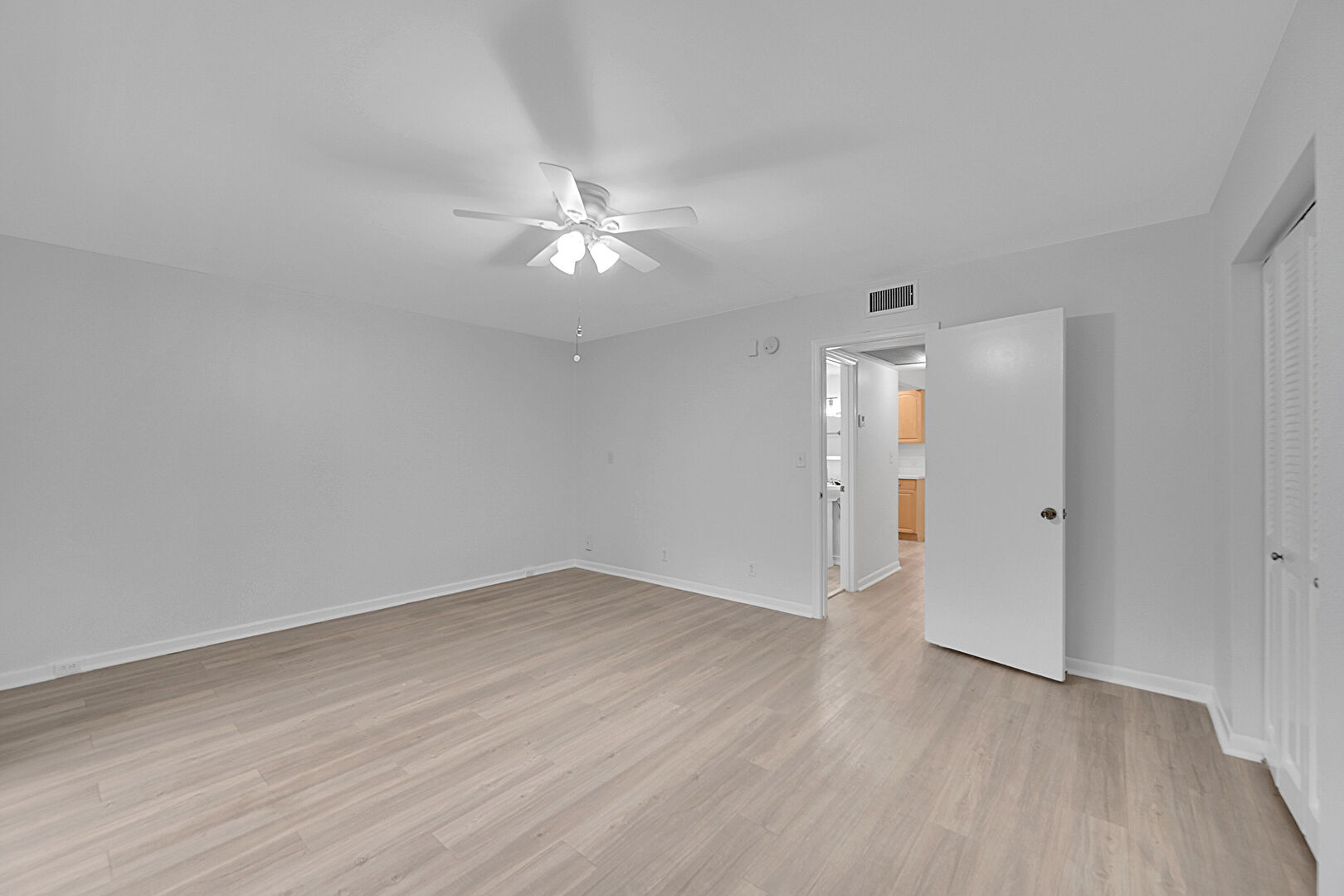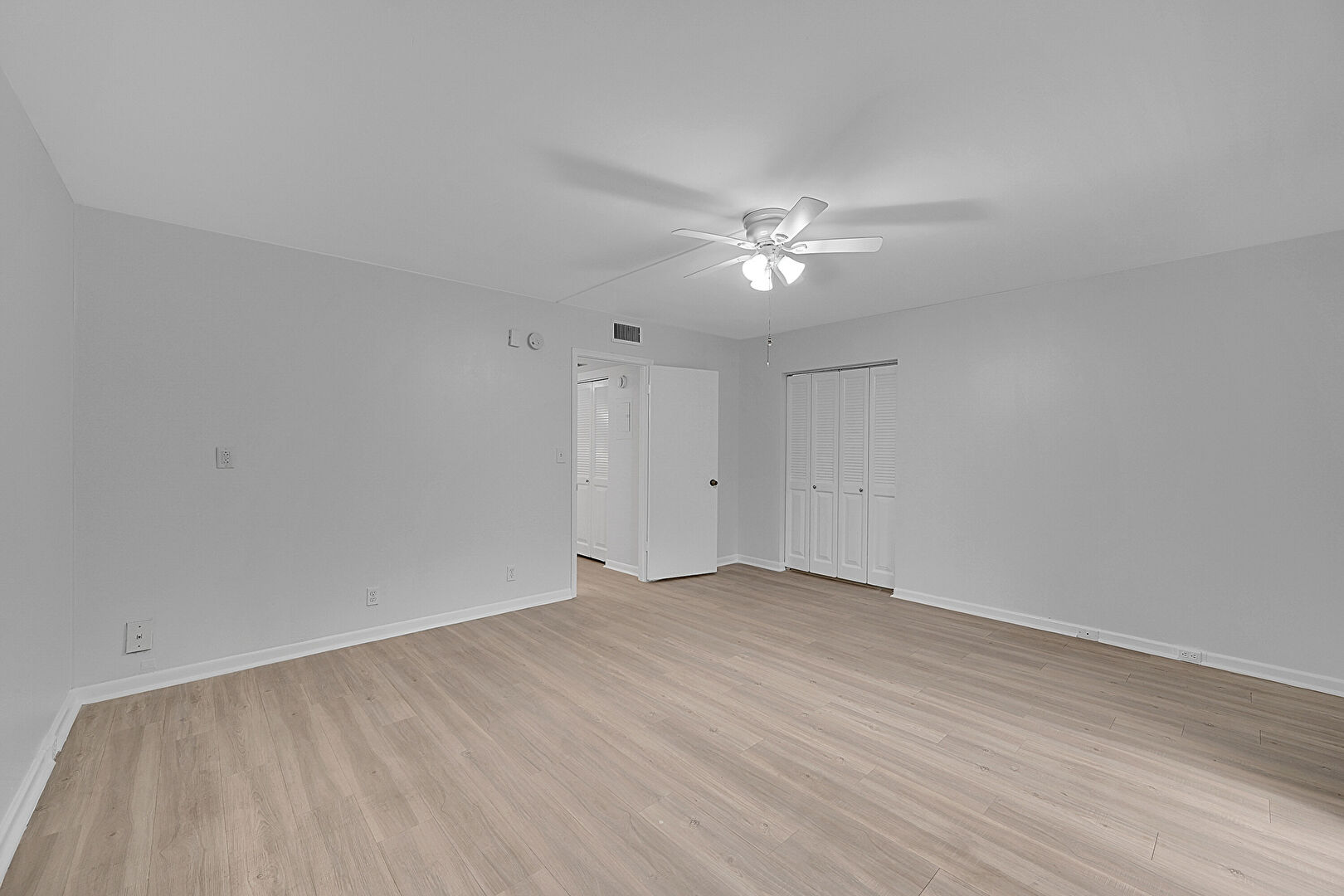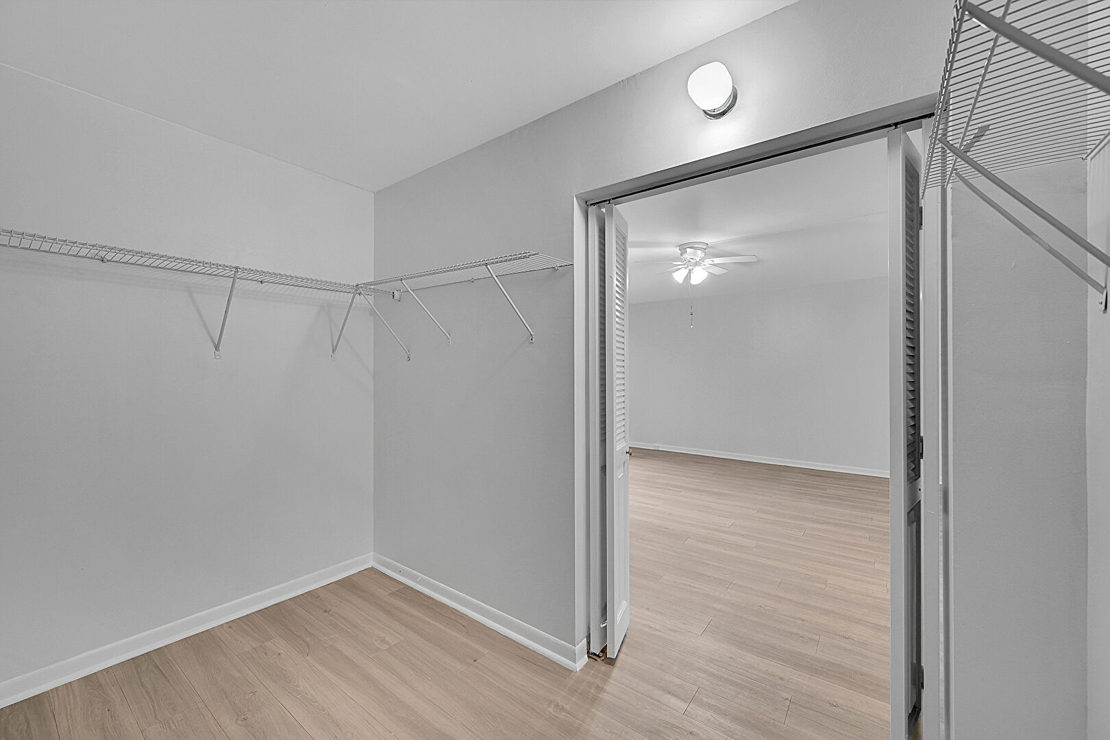 Access To Exterior, Baseboards Wall, Ceiling Fan, Closet, Drywall, Natural Light, Vent, Walk In Closet, Wood Finish Floor, Baseboards Wall, Ceiling Fan, Drywall, Wood Finish Floor