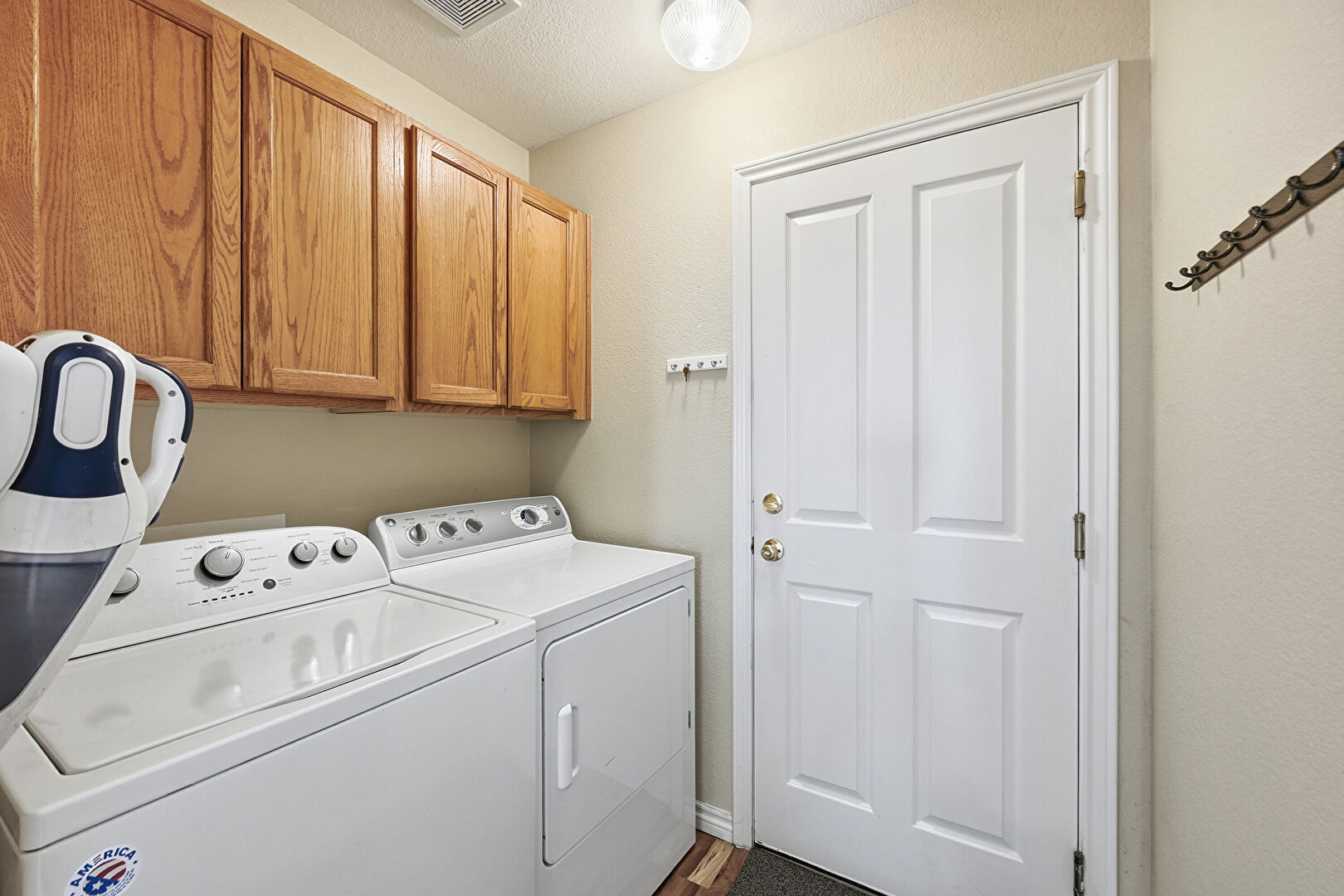 Baseboards Wall, Drywall, Laundry, Vent, Wood Finish Floor, Textured Ceiling