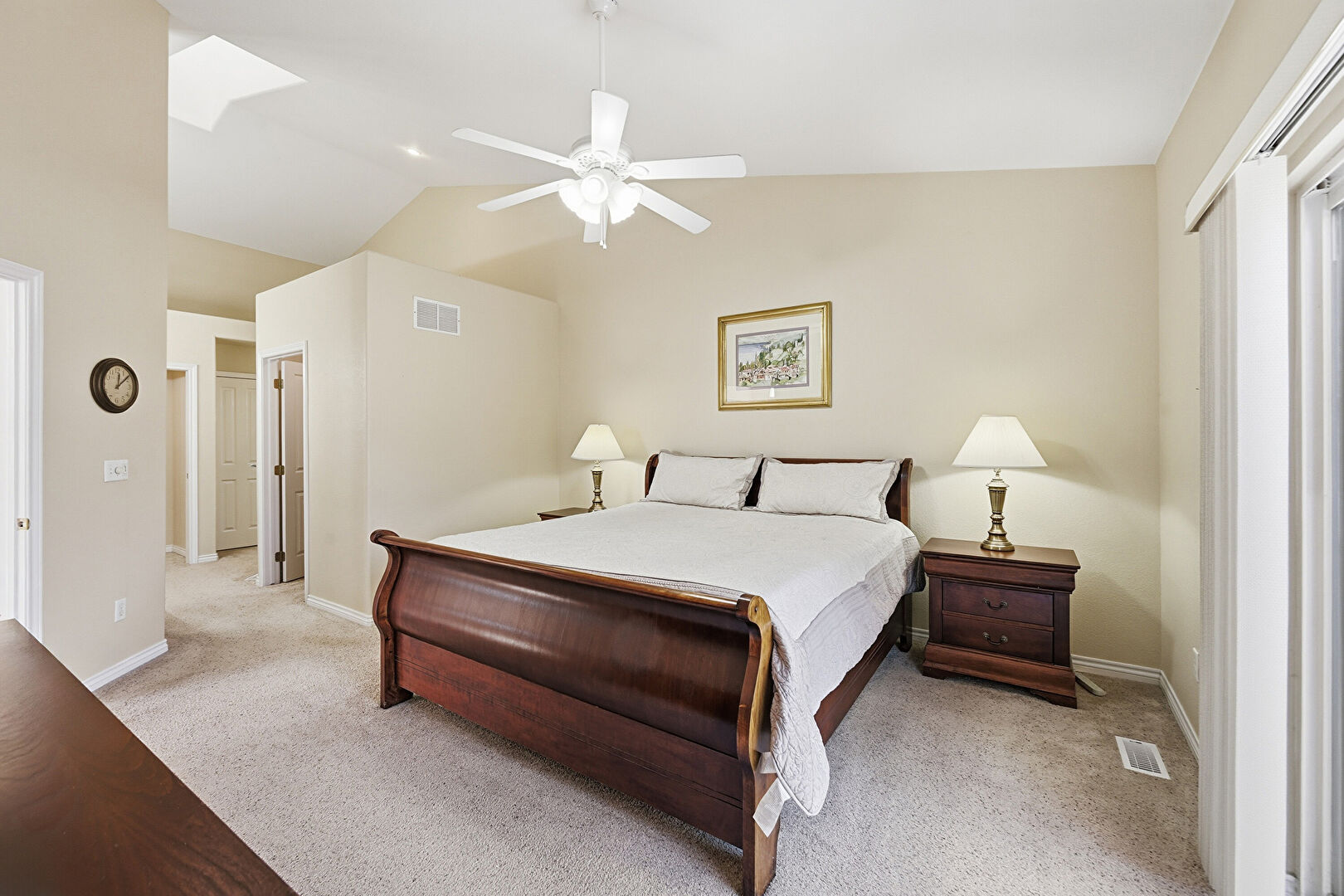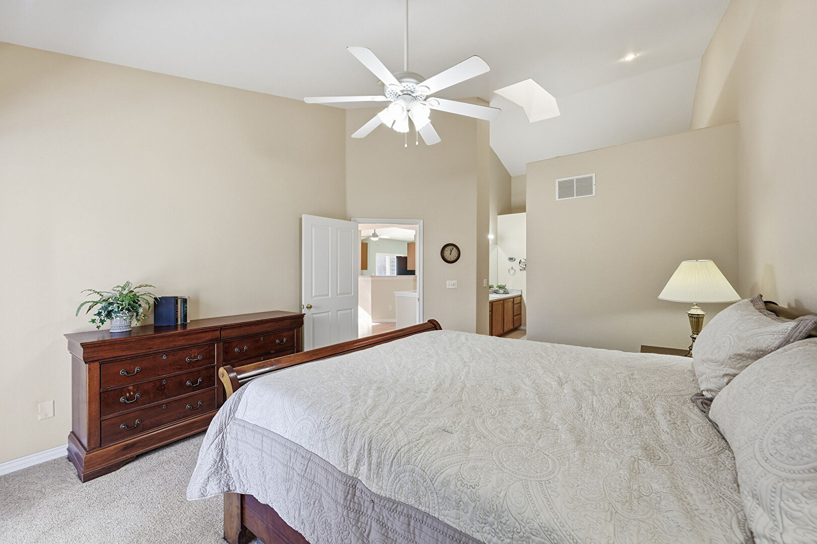 Baseboards Wall, Carpet, Ceiling Fan, Drywall, Ensuite Bathroom, High Ceiling, Natural Light, Skylight, Vaulted Ceiling, Vent, Access To Exterior, Carpet