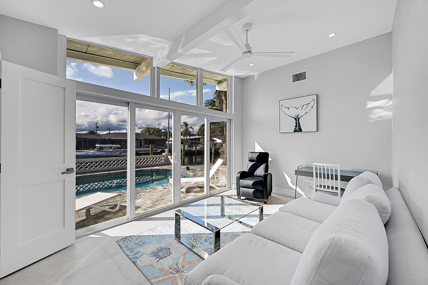 Dock, Fence, Outdoor Bar, Outdoor Dining Area, Outdoor Living Space, Patio, Pool, Residential View, Water View, Waterfront Bulkhead, Fence, Sunroom, Waterfront