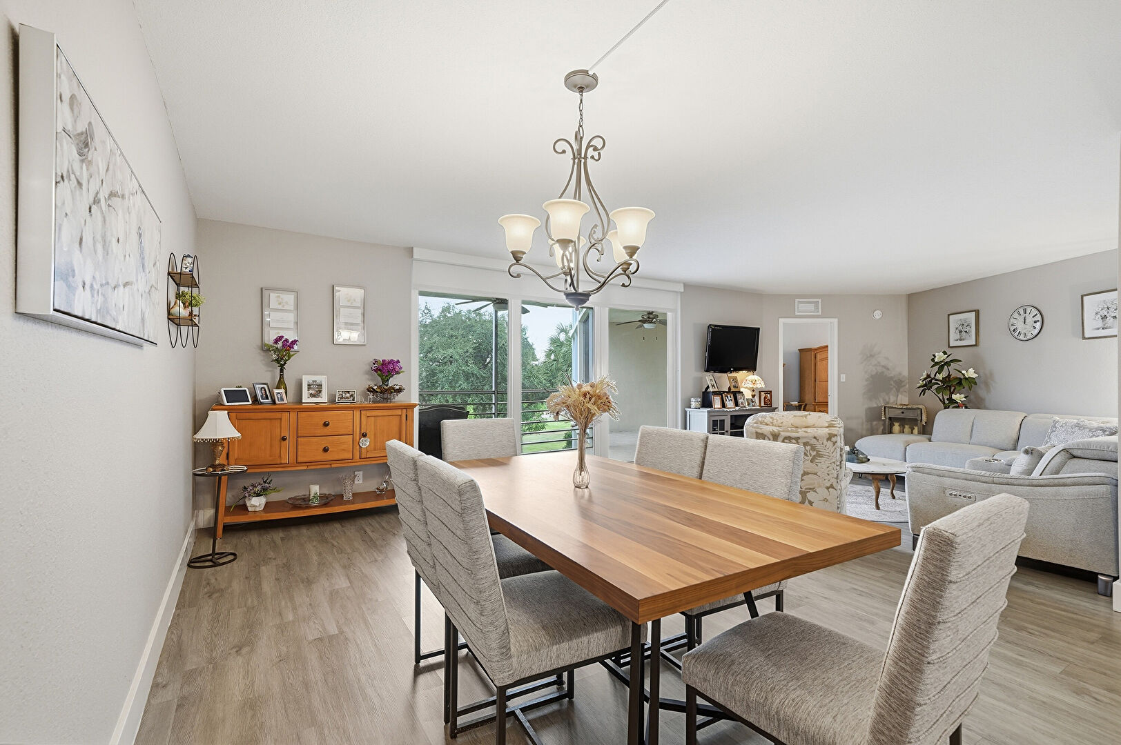 Baseboards Wall, Drywall, Natural Light, Notable Chandelier, Vent, Wood Finish Floor, Baseboards Wall, Drywall, Vent