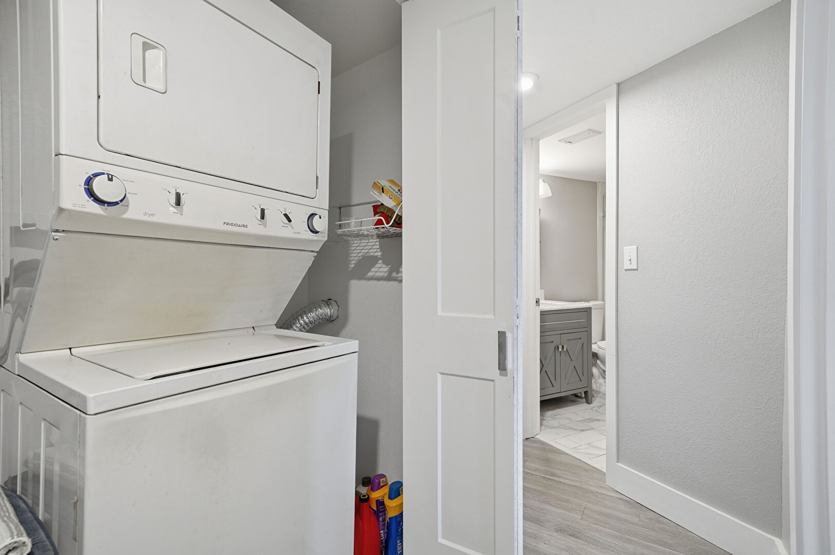 Laundry, Textured Wall, Wood Finish Floor, Baseboards Wall
