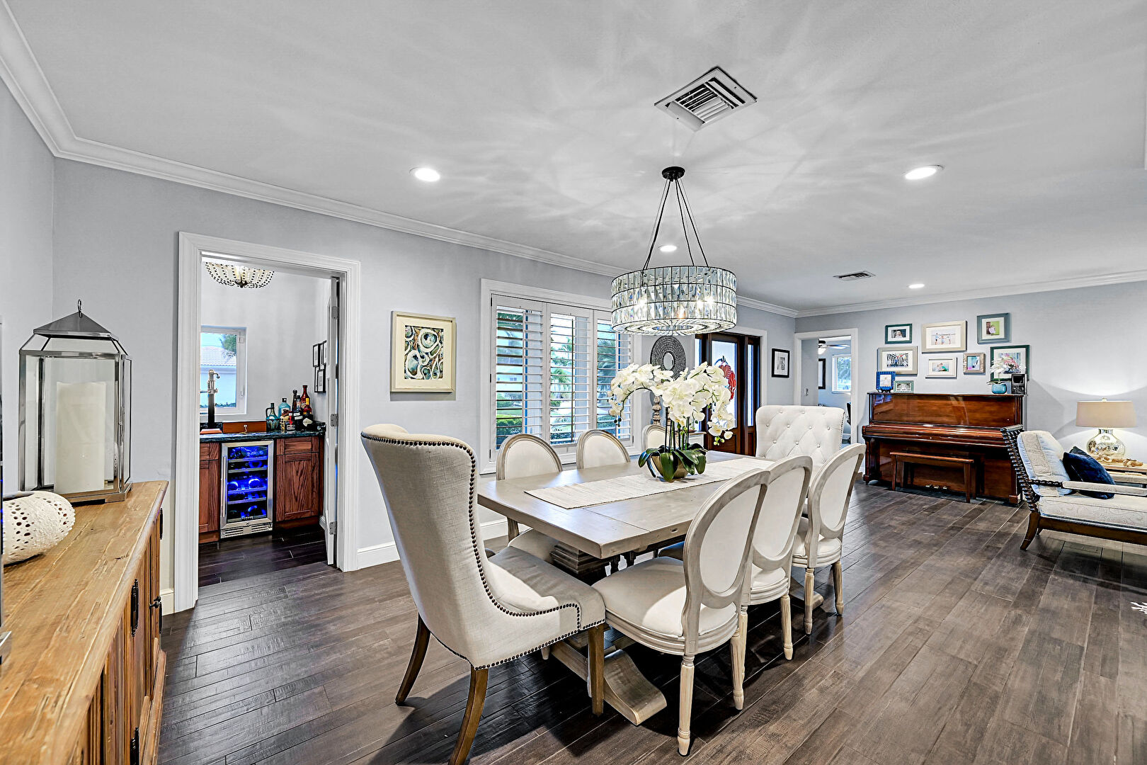Baseboards Wall, Ceiling Fan, Crown Molding, Drywall, Natural Light, Notable Chandelier, Recessed Lighting, Vent, Wine Cooler, Wood Finish Floor, Notable Chandelier, U Shaped Kitchen, Vent