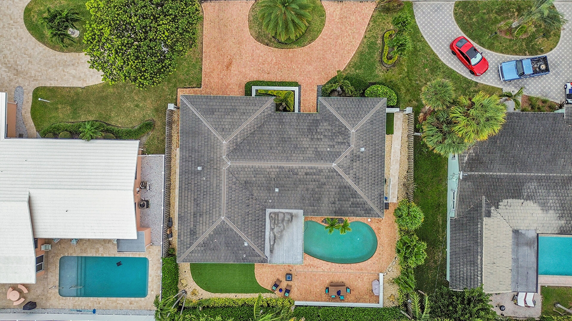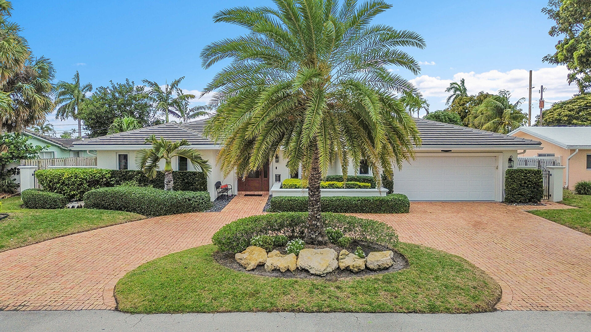 Driveway, Fence, Gutters, Lawn, Stucco Siding, Tile Roof, Downspout, Fence, Lawn