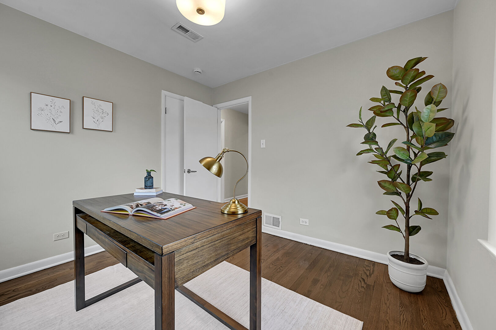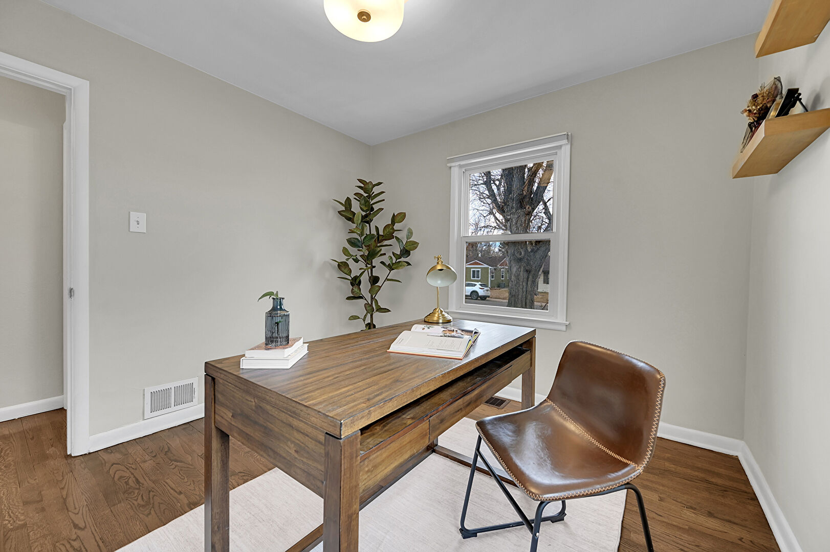 Baseboards Wall, Drywall, Natural Light, Office Area, Vent, Wood Finish Floor, Drywall, Vent, Wood Finish Floor