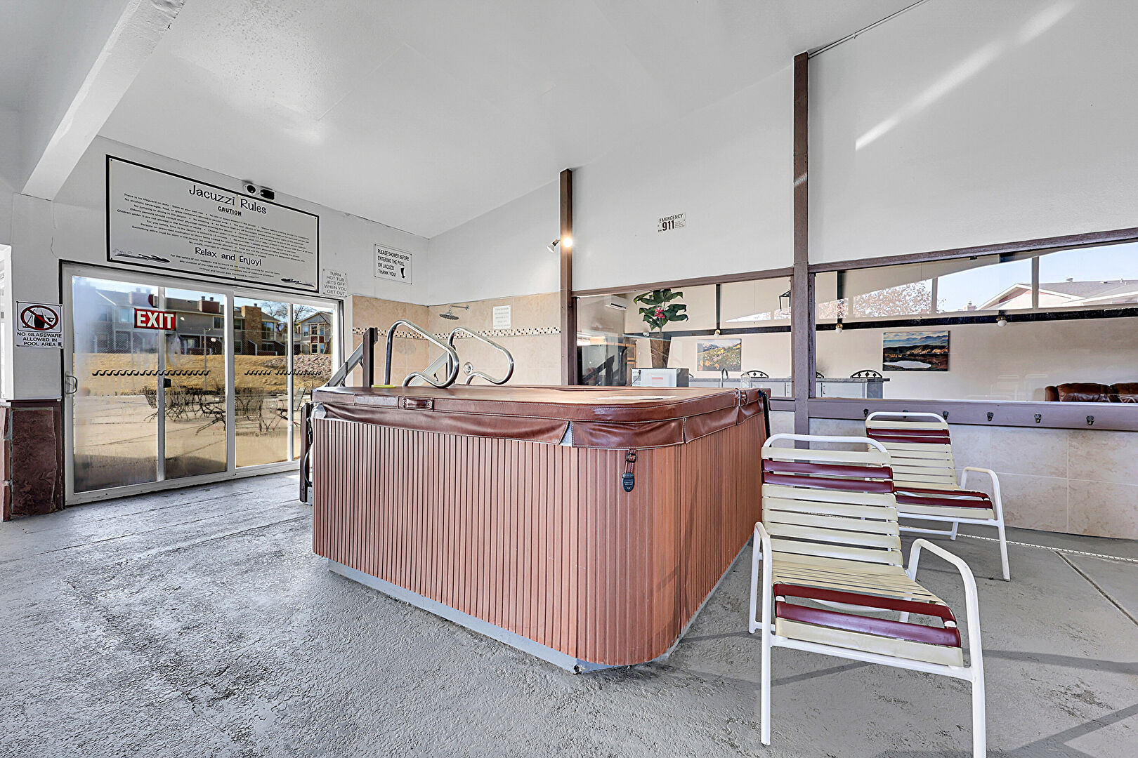 Handrail, Hot Tub, Natural Light, Patio, Pool, Vent