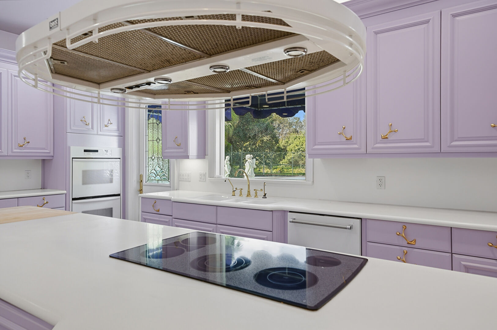Baseboards Wall, Butcher Block Countertops, Concrete Floor, Crown Molding Cabinets, Double Oven, Drywall, Glass Insert Cabinets, Kitchen Bar, Kitchen Island, L Shaped Kitchen, Laundry, Natural Light, Notable Chandelier, Open Shelves, Raised Cabinets, Recessed Lighting, Red Cabinets, Space Heater, Stone Countertops, Tile Floor, Trash Compactor, Vaulted Ceiling, Vent, Warming Drawer, Washer Dryer, Crown Molding Cabinets, Double Oven, Drywall, Natural Light, Raised Cabinets, Recessed Lighting, Tile Floor, Visible Hinge Cabinets, Warming Drawer