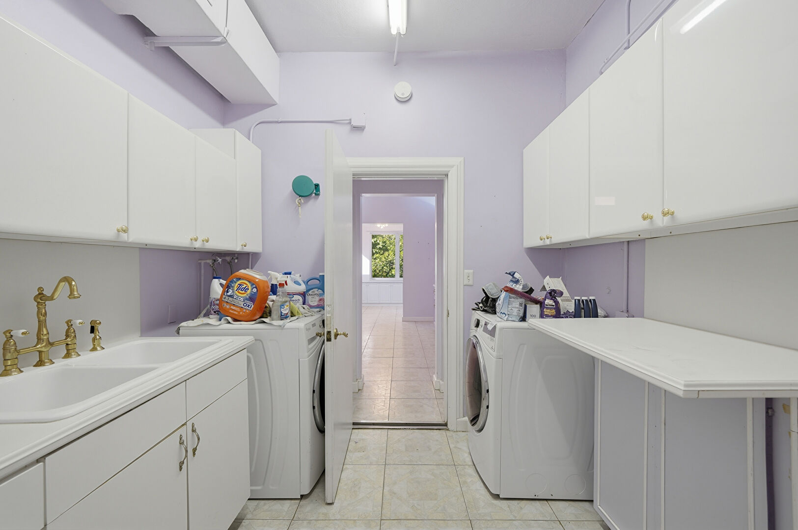 Drywall, Laundry, Natural Light, Smoke Carbon Monoxide Detector, Tile Floor, Baseboards Wall, Drywall