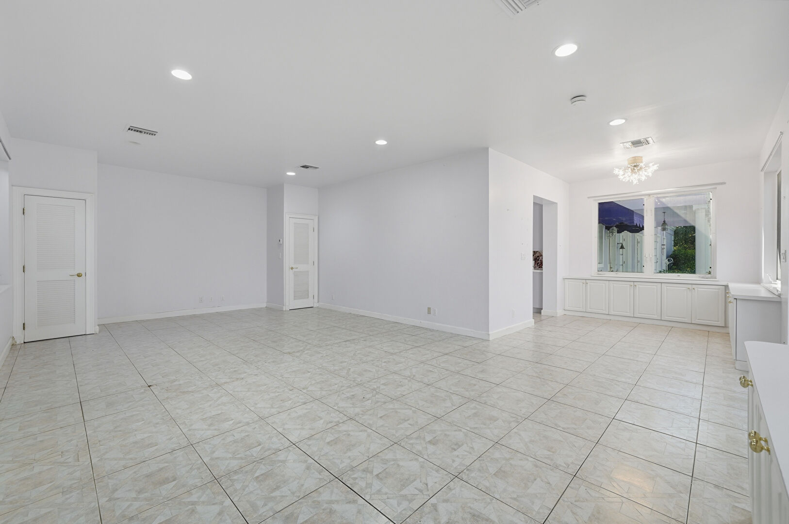 Baseboards Wall, Drywall, French Doors, Natural Light, Notable Chandelier, Paneling Wall, Recessed Lighting, Tile Floor, Vent, Baseboards Wall, French Doors, Tile Floor, Vent