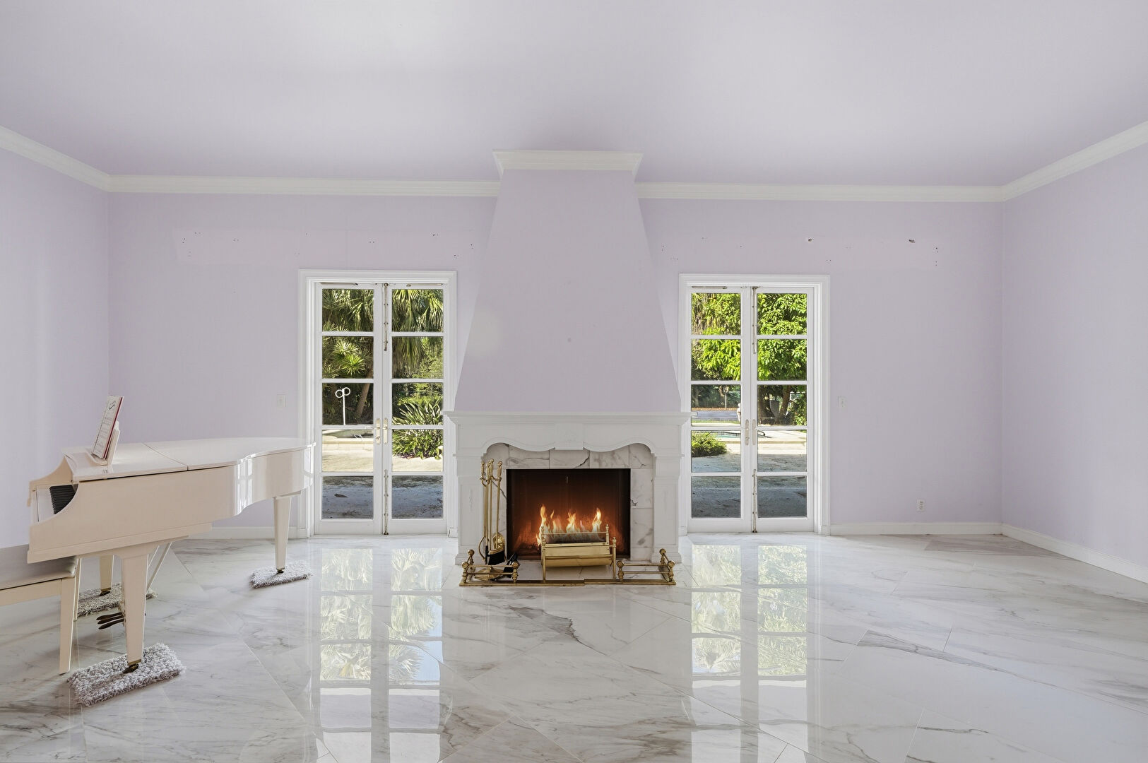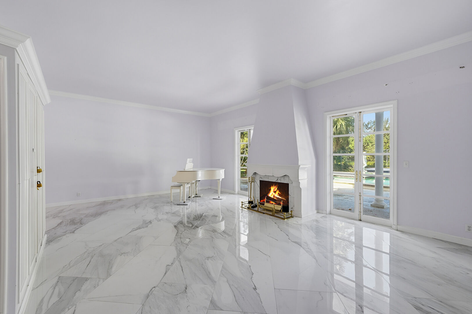 Baseboards Wall, Crown Molding, Decorative Columns, Drywall, Fireplace, Marble Finish Floor, Natural Light, Vent, Baseboards Wall, Drywall, Marble Finish Floor, Natural Light