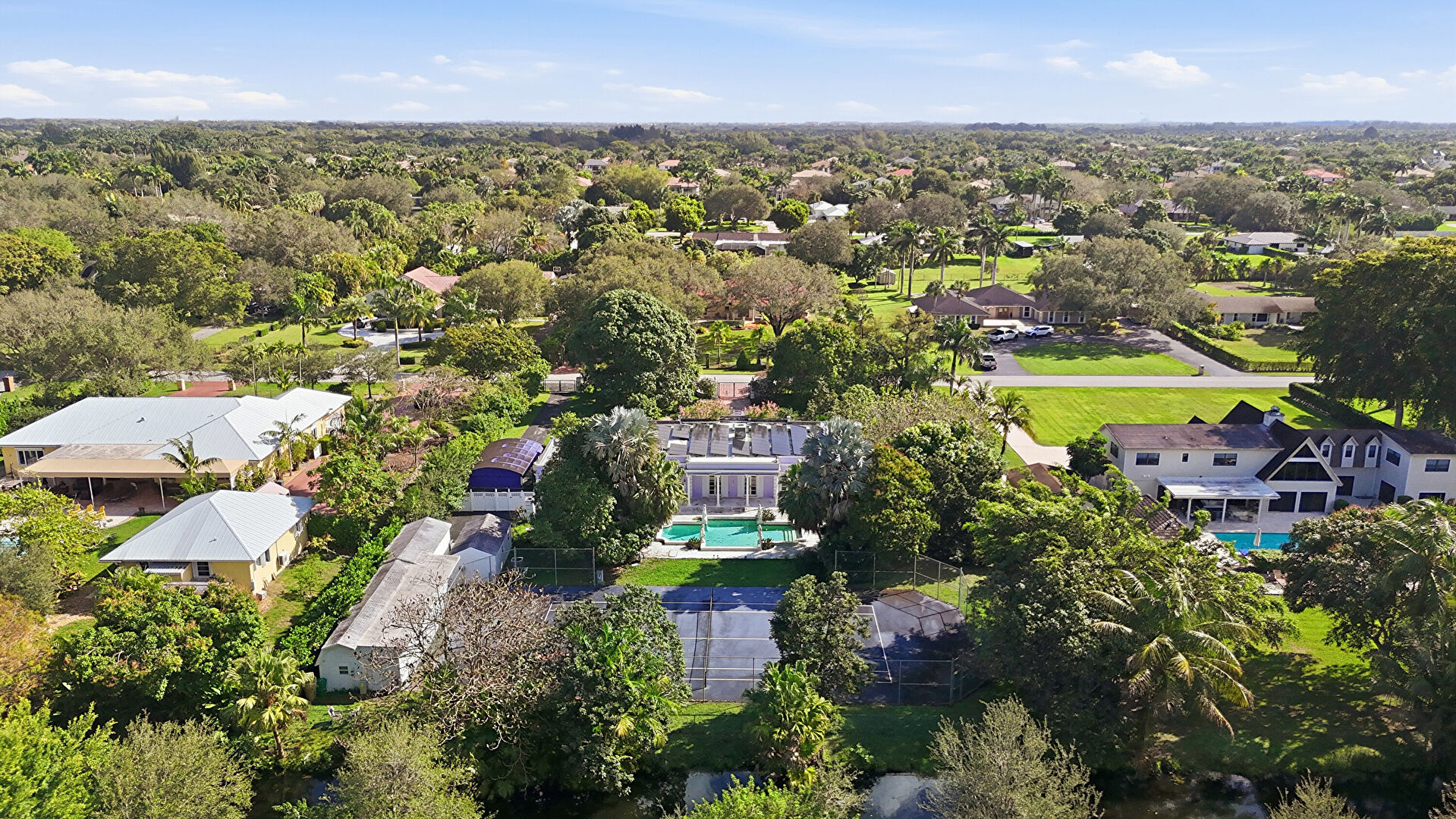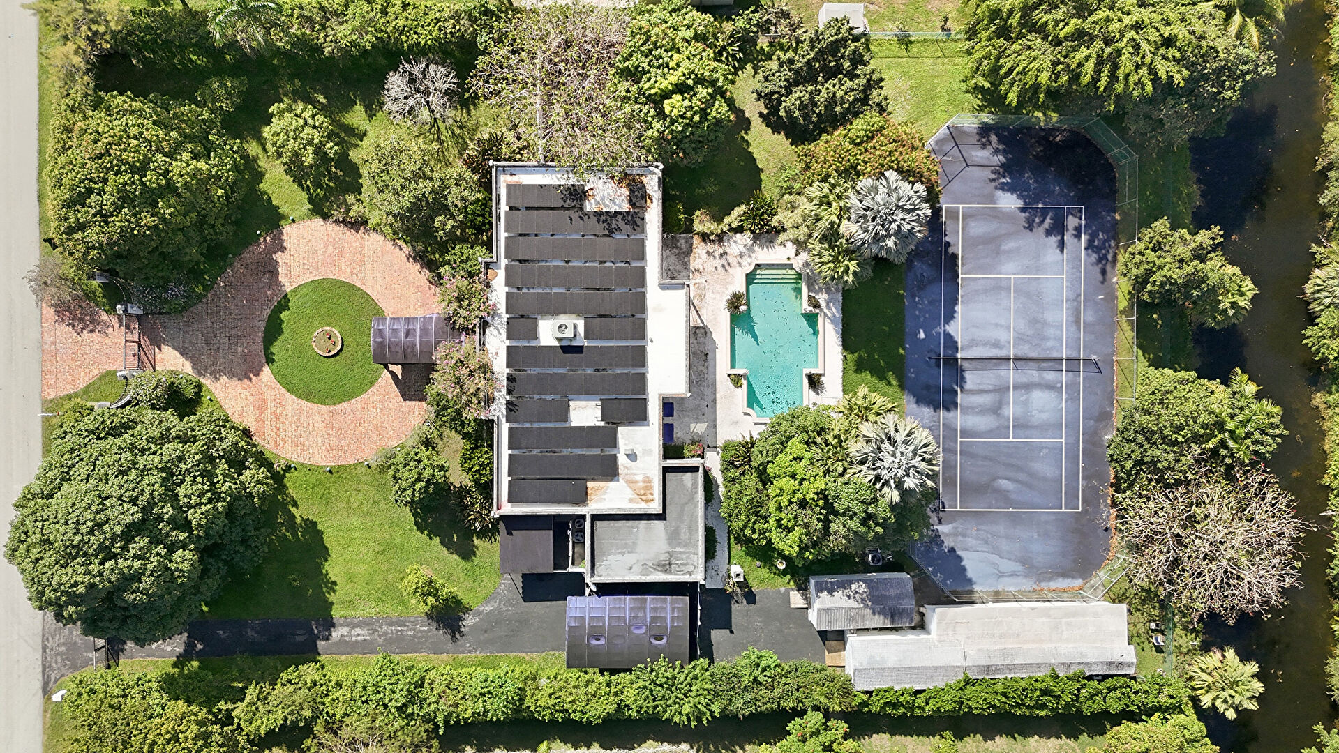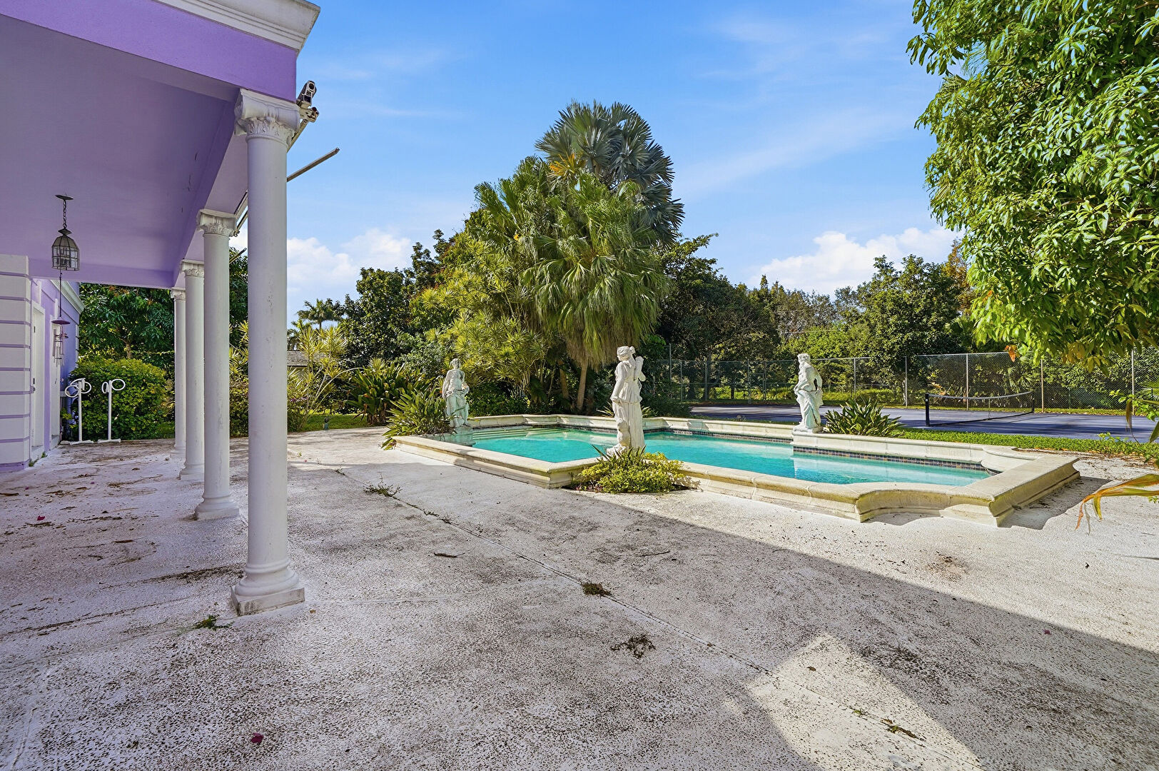 Awning, Fence, Hot Tub, Patio, Pool, Satellite Dish, Woods View, Fence, Patio, Pool, Pool Hot Tub Combo, Tennis Court
