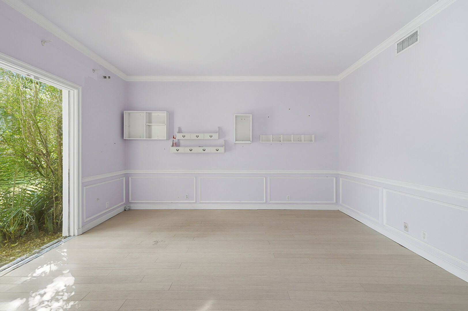 Crown Molding, Drywall, Natural Light, Paneling Wall, Vent, Wainscot Wall, Wood Finish Floor, Natural Light, Paneling Wall, Wainscot Wall