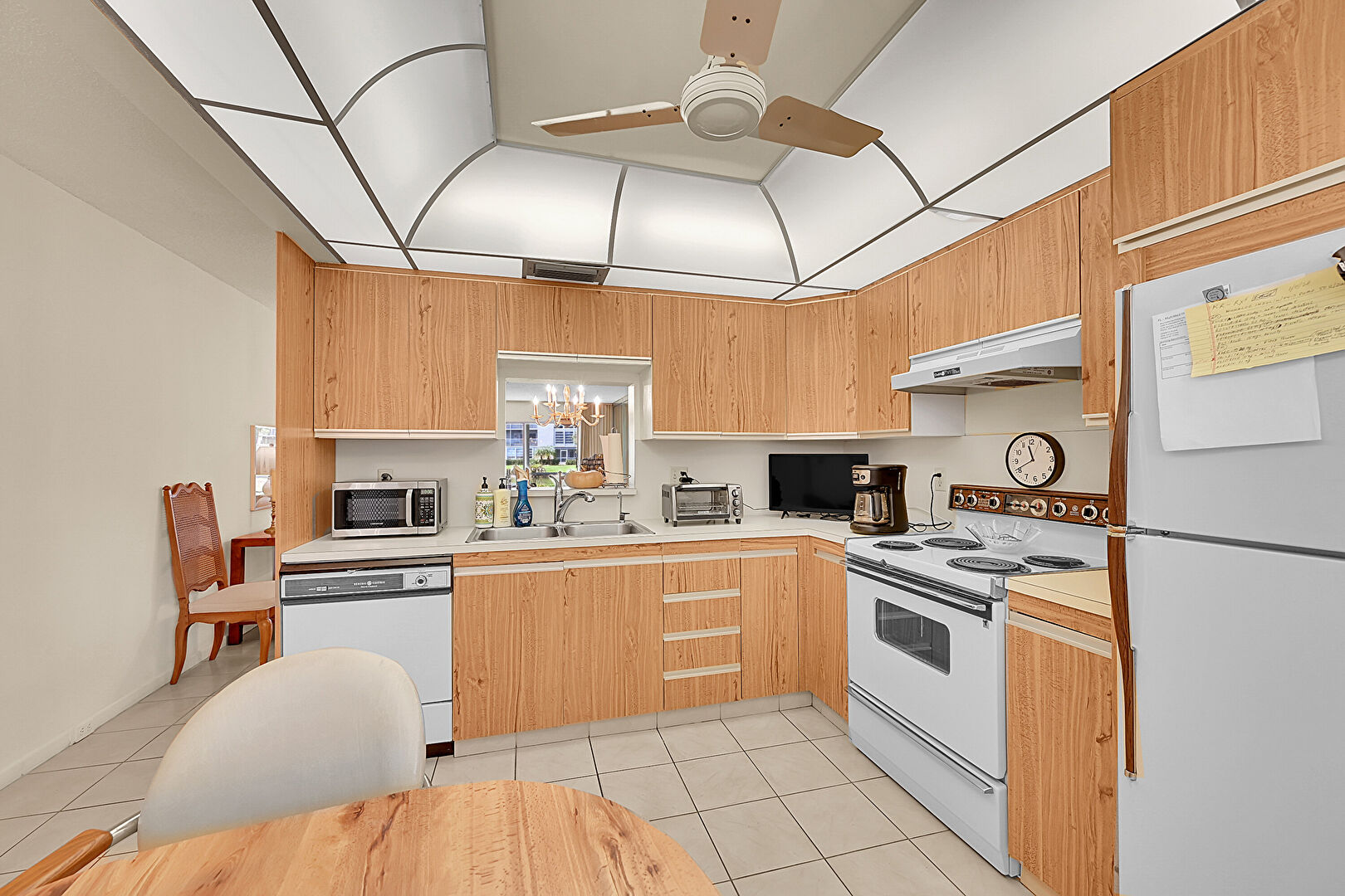 Ceiling Fan, Drywall, Natural Light, Notable Chandelier, Pass Through Window, Tile Floor, Toaster, Vent, Drywall, Tile Floor