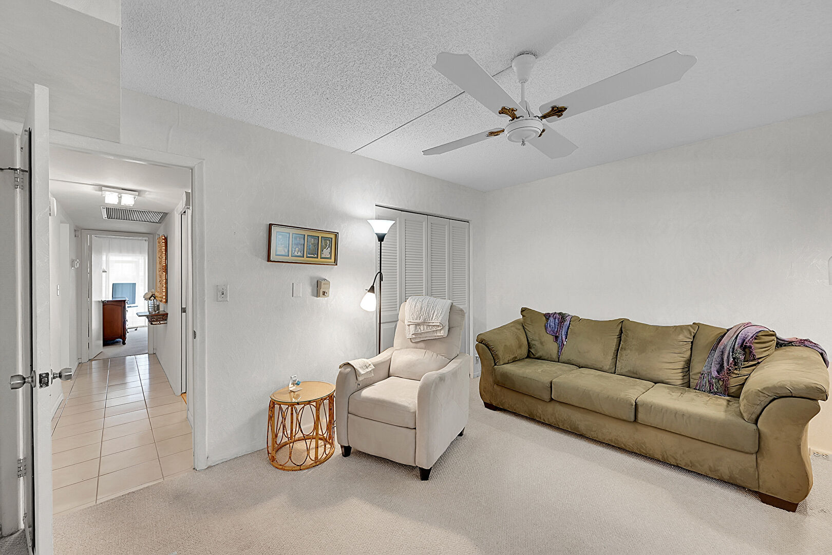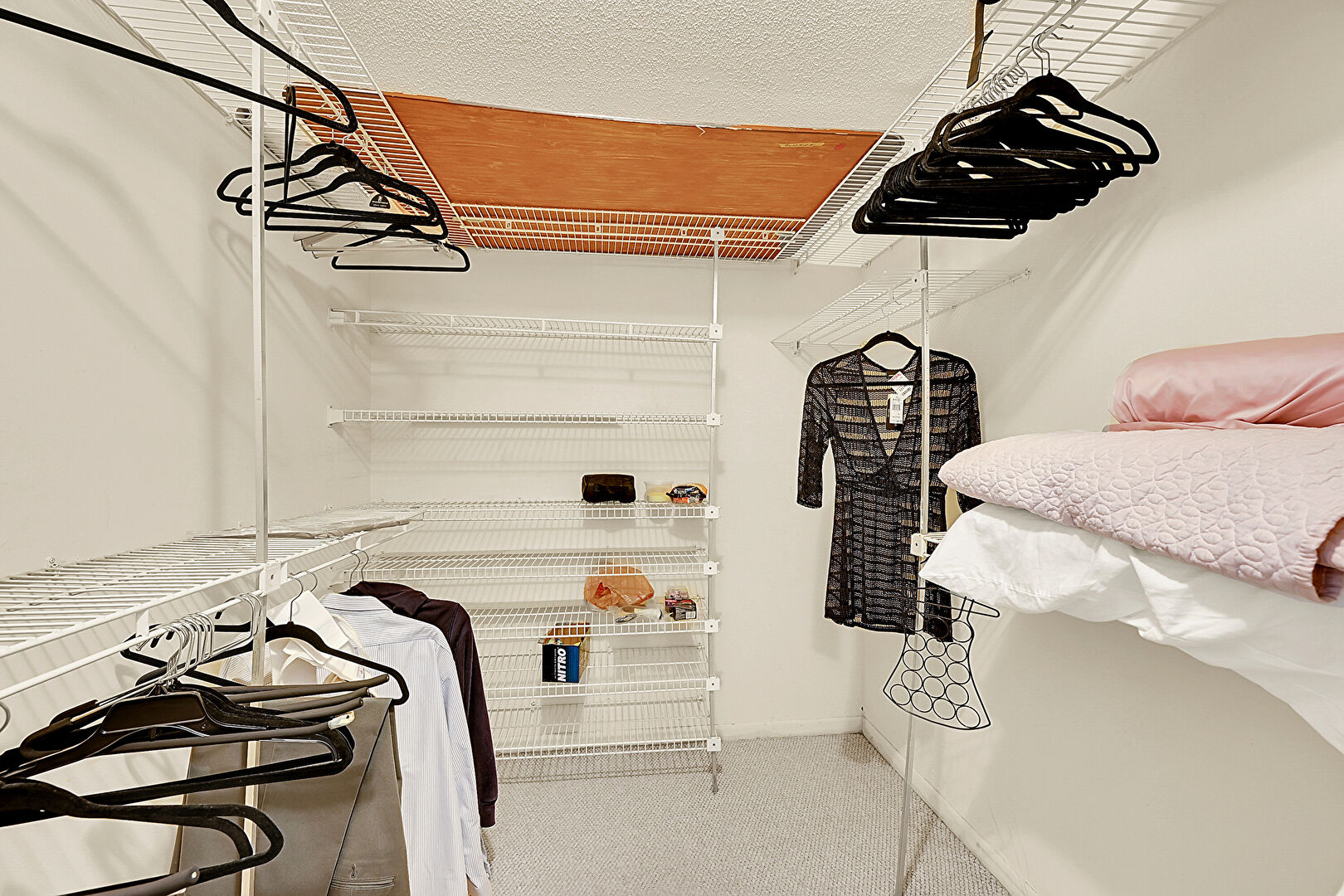 Carpet, Ceiling Fan, Drop Stairs, Drywall, Natural Light, Textured Ceiling, Tile Floor, Vent, Carpet, Drywall