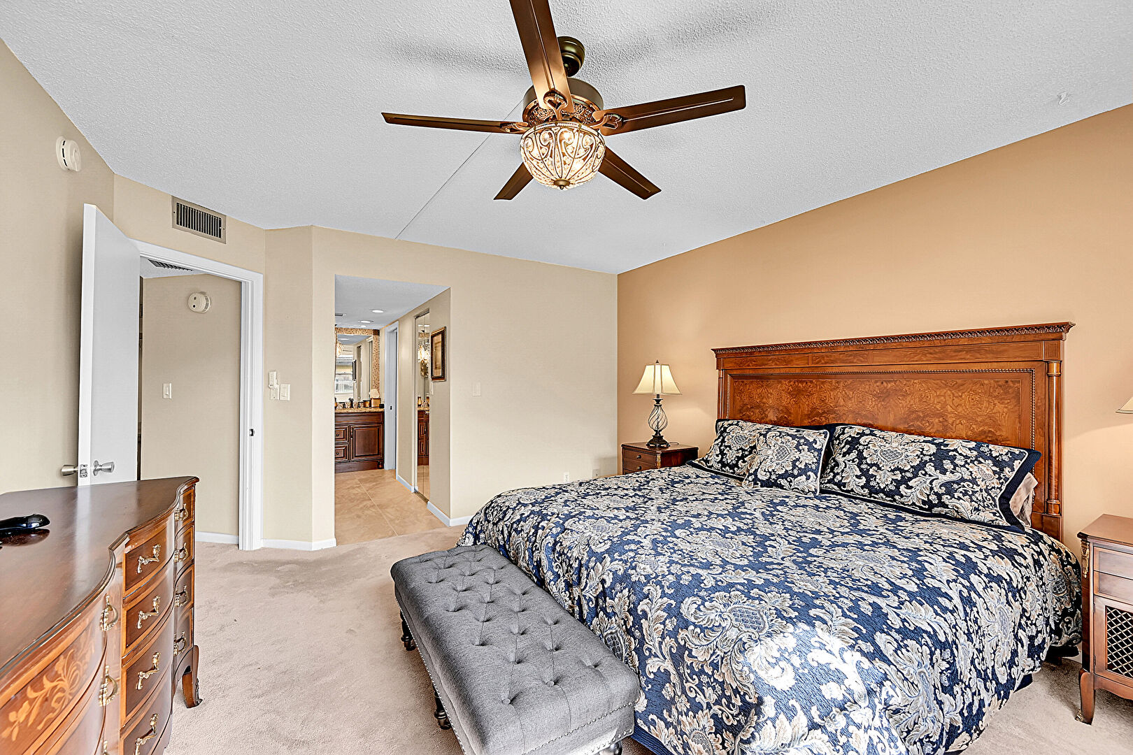 Baseboards Wall, Carpet, Ceiling Fan, Closet, Drywall, Ensuite Bathroom, Natural Light, Smoke Carbon Monoxide Detector, Textured Ceiling, Vent, Baseboards Wall, Carpet, Ceiling Fan, Drywall