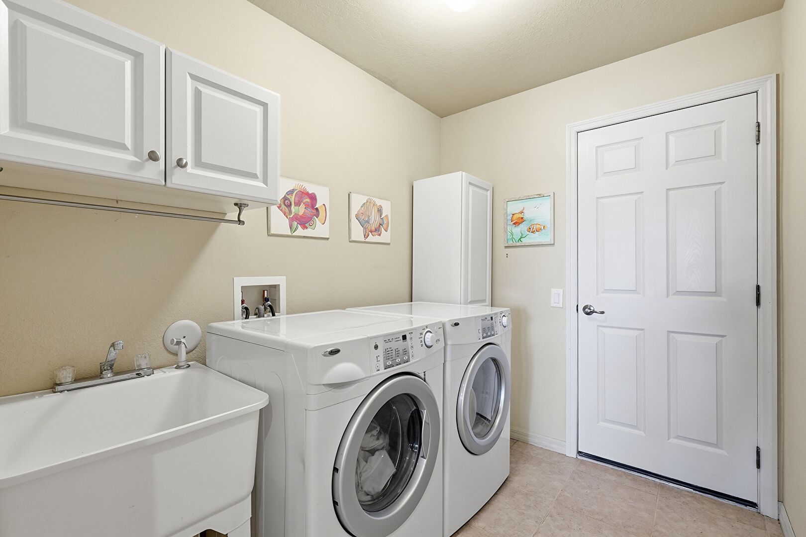 Baseboards Wall, Drywall, Tile Floor, Washer Hookup, Laundry